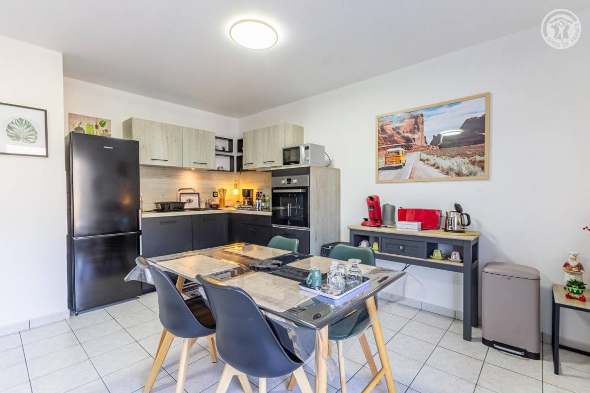 „Nous avons été accueillis chaleureusement par les propriétaires, soucieux de notre bien être lors de notre séjour. Appartement très bien équipé, propre et décoré avec goût, dans les moindres détails. Rien ne manque, vous n'avez qu'à poser vos valises et profiter des visites aux alentours de la région. L'appartement est calme et nous avons apprécié la vue remarquable sur les montagnes en profitant de la terrasse. Gîte à recommander sans hésitation.“