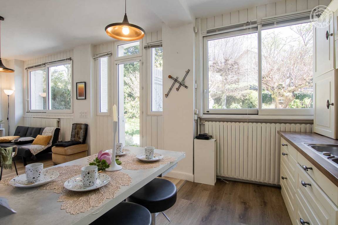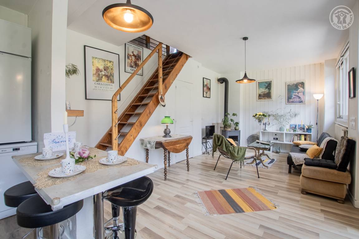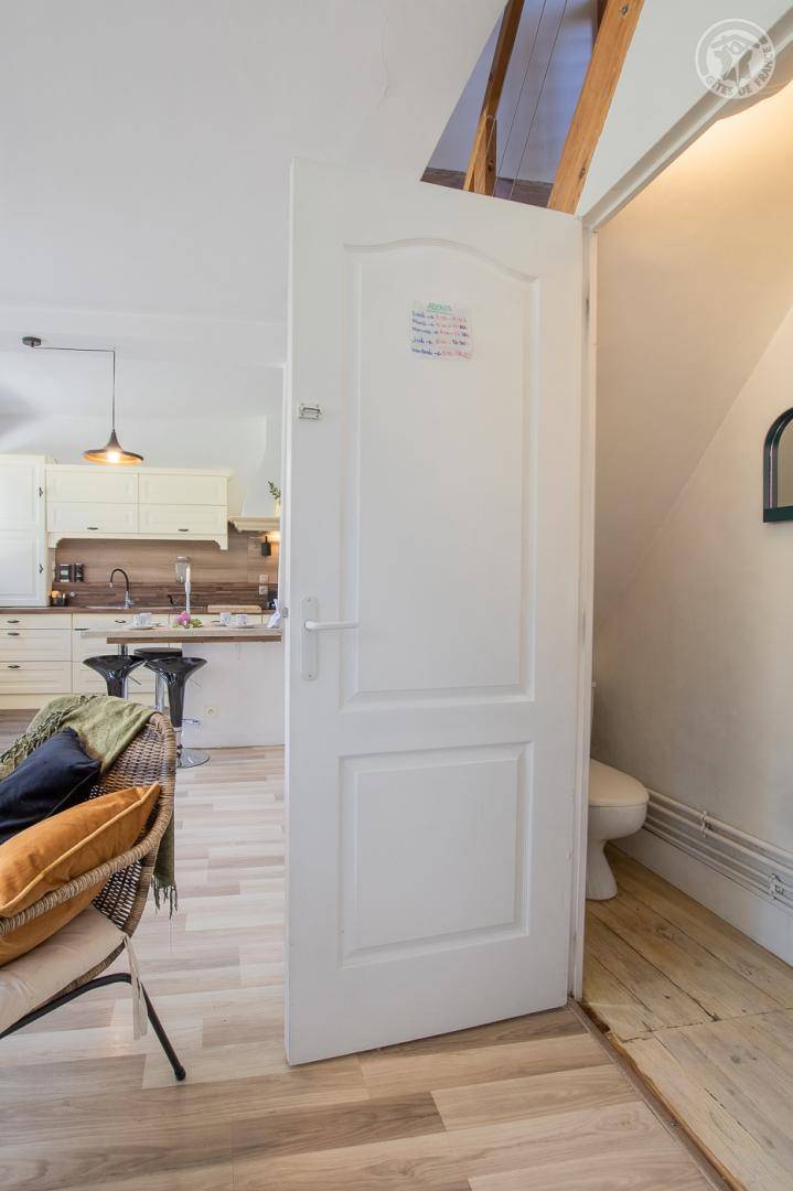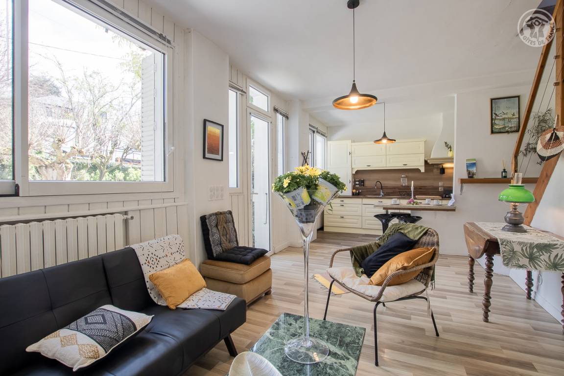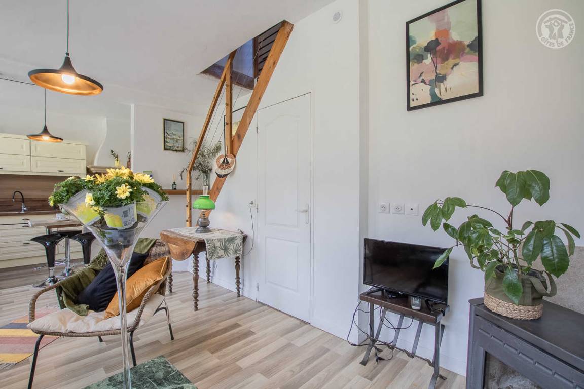 Gite auf 2 Ebenen in einem Reihenhaus, einschließlich des Hauses der Eigentümer und der für das Jahr gemieteten Unterkunft. Erdgeschoss: Wohnküche, Aufenthaltsraum, WC im Keller. 1. Etage: 2 Schlafzimmer (1 Doppelbett 140x190 cm / 1 Doppelbett 160x200 cm), ein Badezimmer (Badewanne und WC). Garten mit Bäumen und Blumen mit privatem Bereich: Tisch und Stühle, Gartenpavillon (Pavillon) und Grill. Privater Parkplatz für 1 Auto auf dem Grundstück.