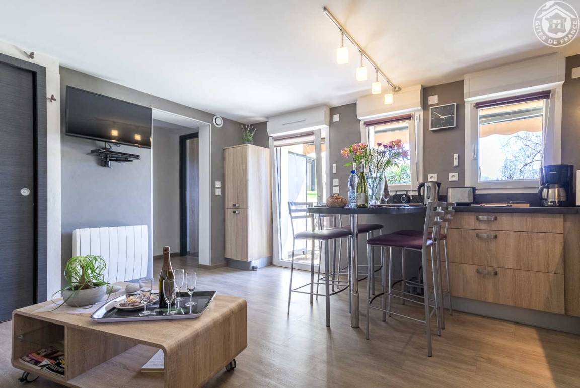 Gîte im Erdgeschoss des Hauses der Besitzer. Ebener Zugang. Wohnzimmer-Küche-Lounge-Bereich, Flachbild-TV + DVD-Player. Integrierte und ausgestattete Küche. Duschbad (große Dusche, Thermostatarmaturen, elektrischer Handtuchhalter). Unabhängiges WC. 2 Schlafzimmer (1 Doppelbett 140 x 200 cm, Memory Foam-Matratze, Flachbildfernseher / 1 Doppelbett 140 x 200 cm, Memory Foam-Matratze). Gratis Wifi. Bettwäsche inklusive + Betten gemacht. Bettwäsche wird gestellt. Private Terrasse mit elektrisch abnehmbarer Markise, privater Garten. Grill. Gartenlounge. Zugang zum Pool der Eigentümer (nach Fahrplan). Privater Parkplatz auf dem Gelände des Anwesens. Wochenende auf Anfrage zu bestimmten Zeiten.