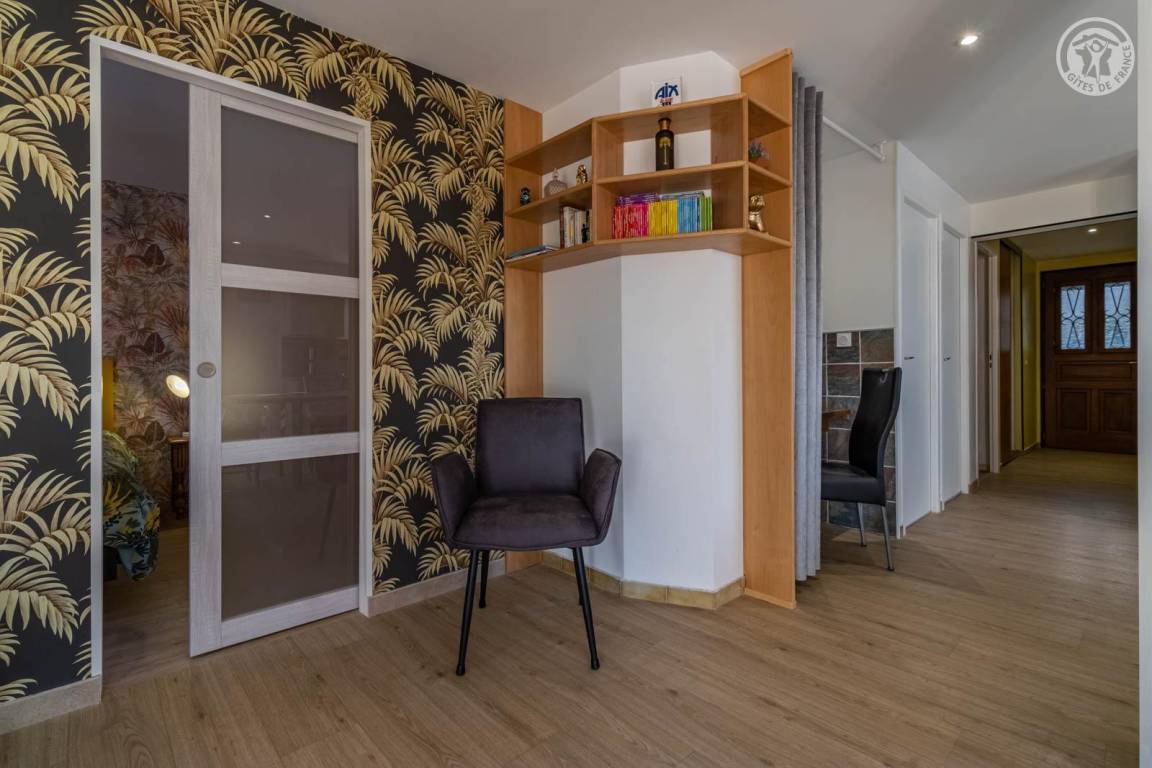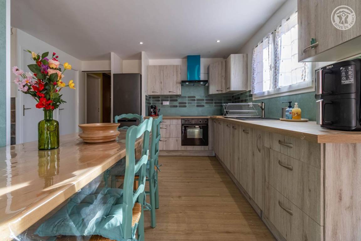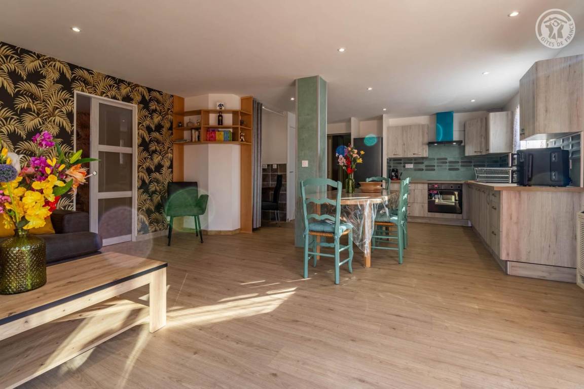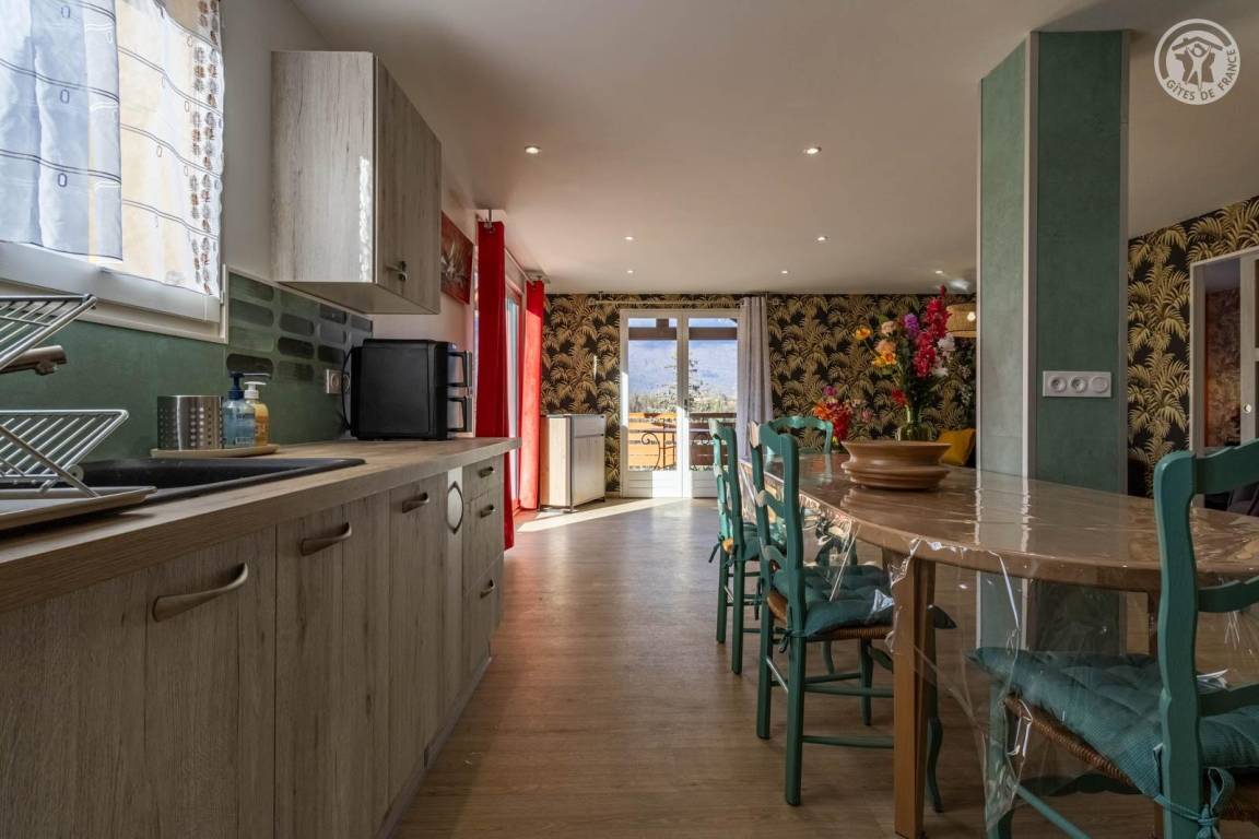 „Gite très spacieux, très bien rénové avec goût Très belle terrasse avec magnifique vueBien équipé quantité de vaisselle pour deux suffisante mais peut-être pas pour une famille de quatre personnes Seul bémol: La chambre parentale donne côté ligne de chemin de fer et poulailler du voisin d’où désagrément le matin“