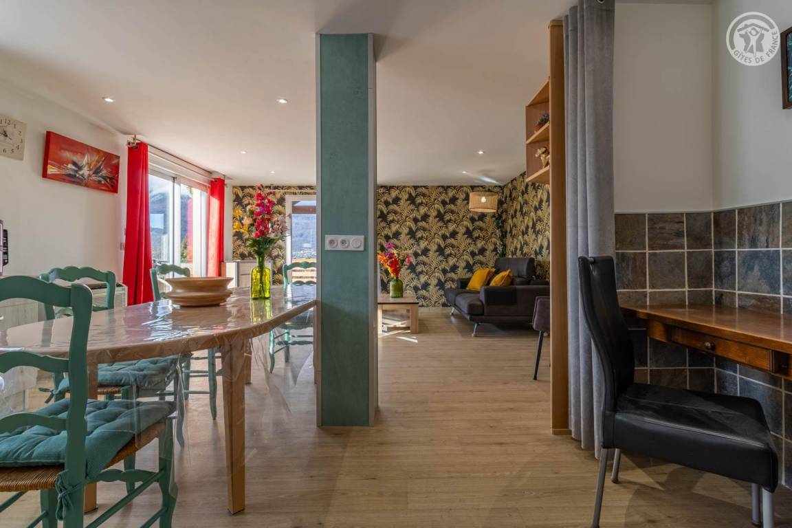 „Très bonne semaine dans ce gîte. Le propriétaire Jean est très agréable. Tout était parfait. Belle terrasse avec magnifique point de vue. Seul petit bémol: Manque le wifi pour proposer parfois dessins animé sur notre tablette aux enfants.“