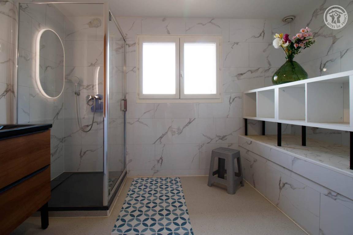 „Les : Spacieux, confortable, plutôt bien équipé, literies neuves, très jolie vue, Super boulangerie à quelques pas. Plages à proximité Les -: Toute la journée une odeur nauséabonde dans la salle de bain, de plus située juste au niveau du parking et sous la fenêtre de la chambre des enfants, une caisse à chat pas très propre (qui abrite DES chats) et un tas de reste de chantier... Vue pas très agréable quand on arrive.“