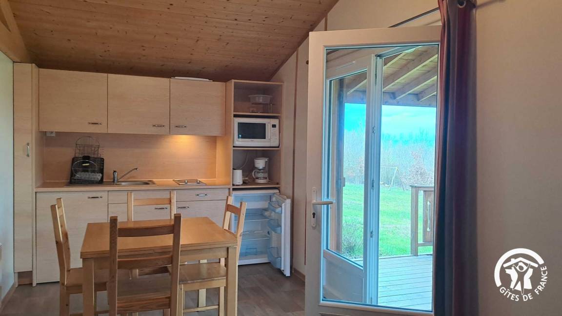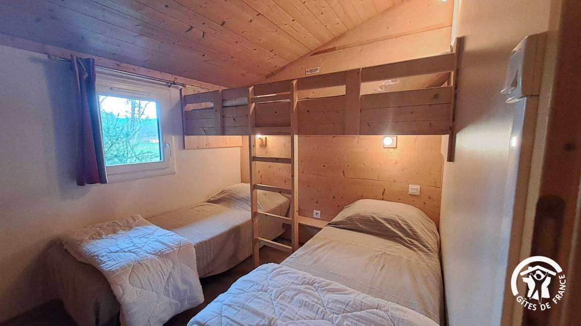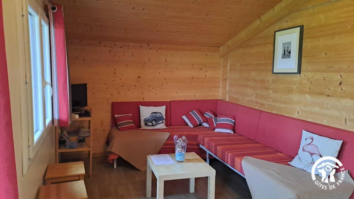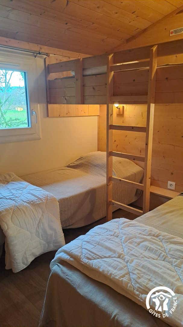 „Nous sommes restés que 2 nuits car nous étions de mariage pas très loin.Le cadre est très sympathique, le chalet confortable avec 2 chambres, une avec un grand lit, l'autre avec 3 lits dont 1 en hauteur. Cela correspondait exactement à nos attentes.“