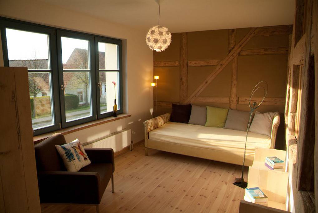 Hervorragend geeignet für Familienurlaub und große Gemeinschaft oder Freunde bis zu 13 Personen. Ausstattung mit Küche, Kamin, großem Garten, Zimmern auf 2 Etagen, Kinderspielecken, Ruhebereiche, Bibliothek und Couch für gemeinschaftliches Miteinander. Dort wo am Morgen die Vögel beim Frühstück zwitschern und sternenklare Nächte die Unendlichkeit des Universums verraten, dort finden Sie Ihre persönlichen Glücksmomente – pure Lust am Leben, Entspannung und Erholung. ,Ökologische Baustoffe, Lehm und alte Substanz, gepaart mit zeitgemäßen Komfort garantieren ein rundum Wohlfühlen.