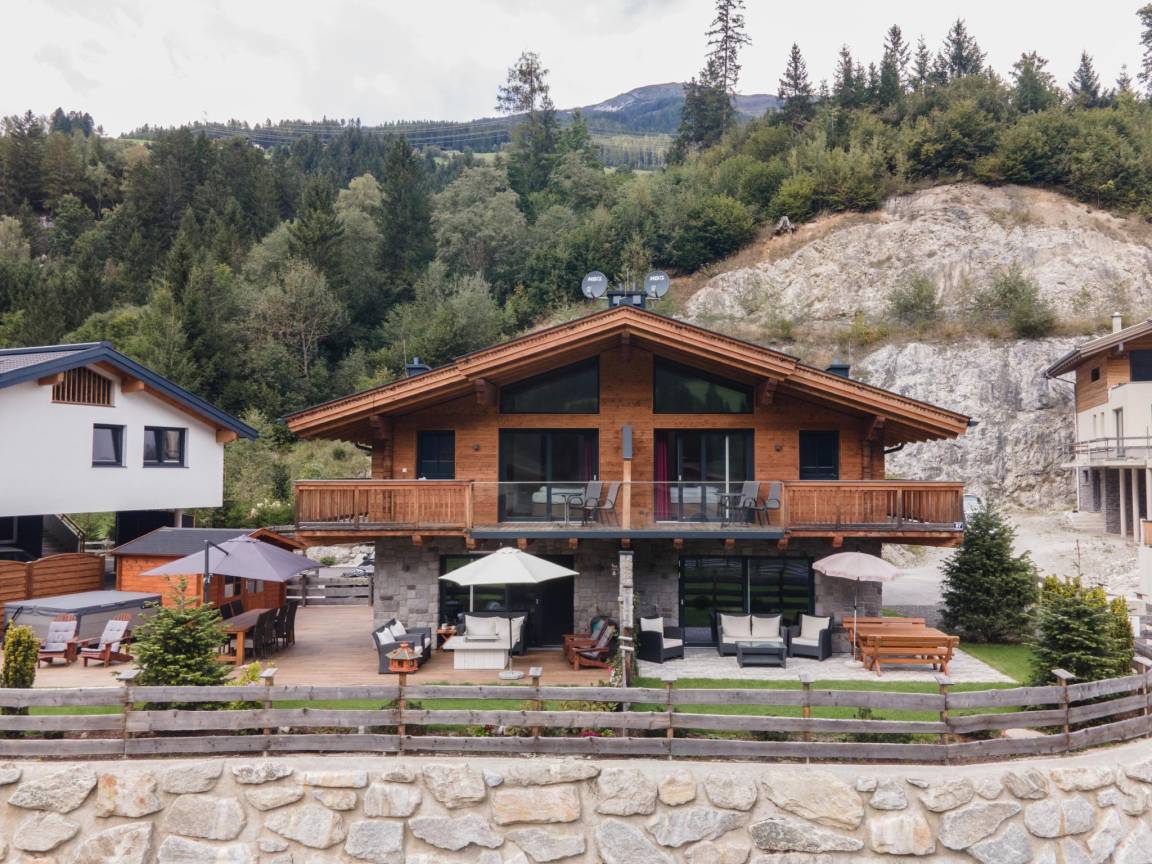 Hausbeschreibung : Das Chalet besteht aus 2 verbundenen Häusern, die beide zu Ihrer Verfügung stehen. Die Einheit verfügt über 8 Schlafzimmer und 6 Bäder. Sie haben einen Blick auf die 3.073 Meter hohe Wildkarspitze und die Einrichtung im modernen alpinen Stil verbindet traditionelle Elemente mit zeitgemäßem Komfort. Nach einem aktiven Tag in den Bergen können Sie sich im privaten Wellnessbereich mit moderner Sauna und Regendusche so richtig entspannen. Es gibt eine Verbindungstür zwischen den Unterkünften