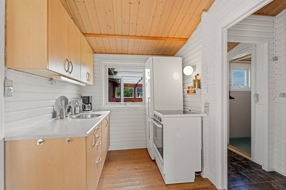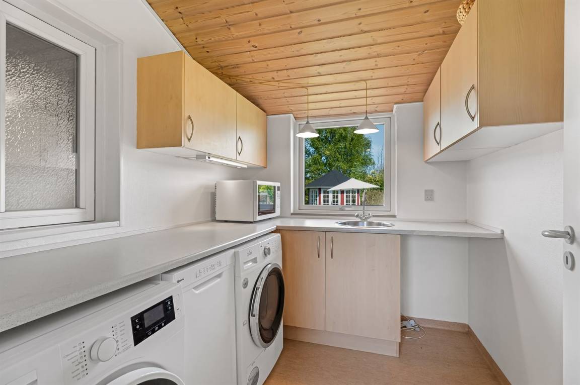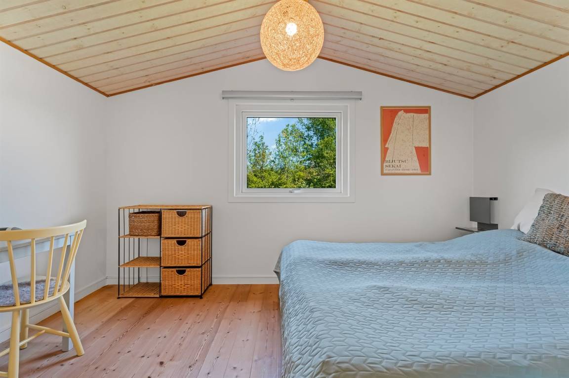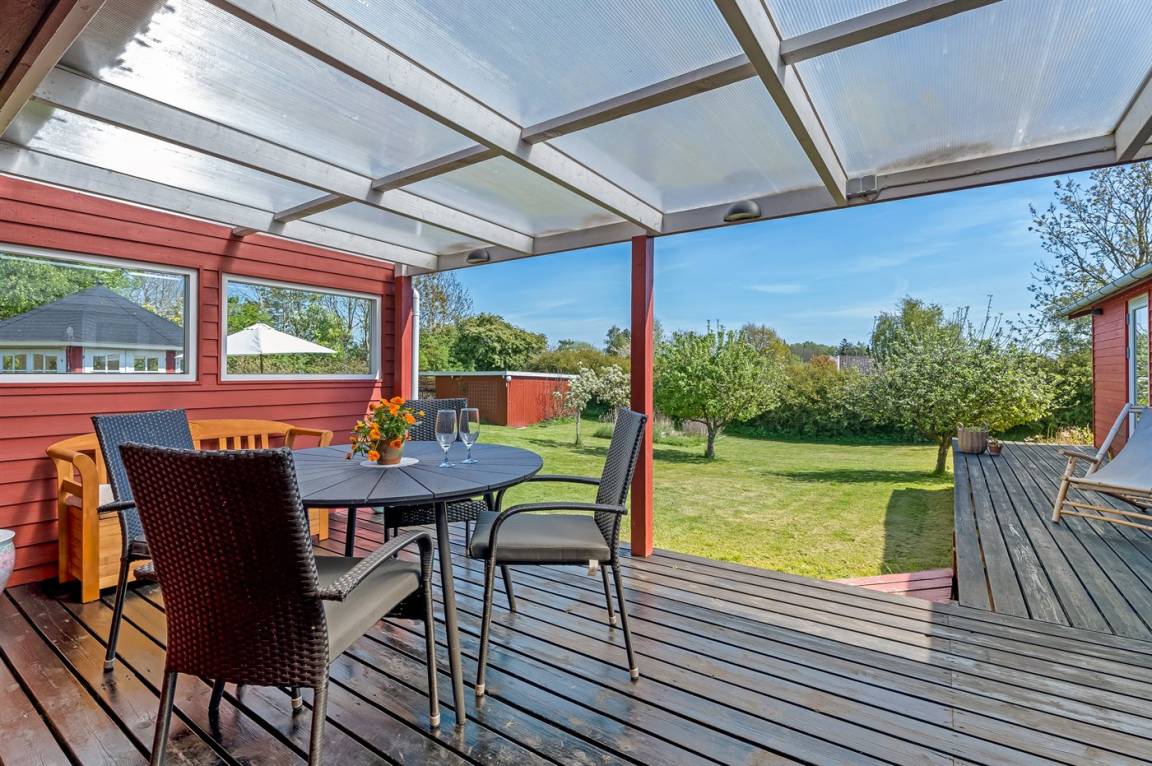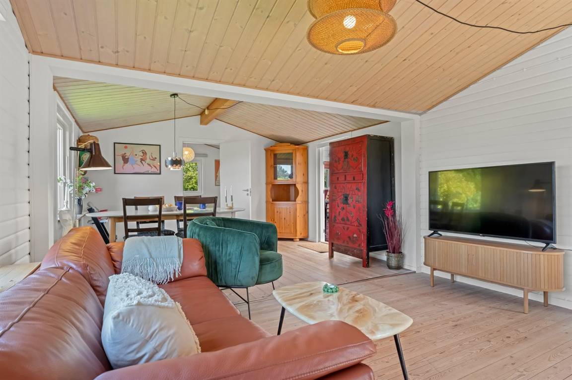 Am Ende einer kleinen, ruhigen Straße im immer schönen Bakkebølle Strand gelegen – direkt am großen geschützten Gemeinschafts- und Naturgebiet mit Wegen, die sich bis ganz ans Wasser erstrecken. Nur ein kleiner Spaziergang durch die hügelige Landschaft – etwa 700 Meter – und schon hast du die Füße im Wasser.