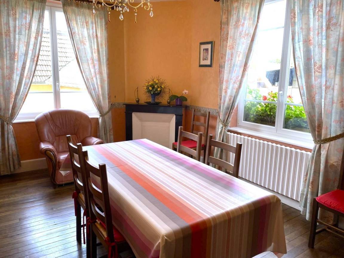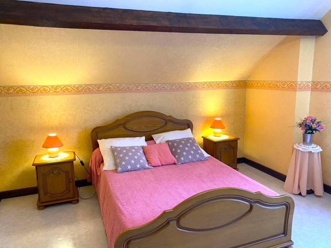 Unabhängiges Haus. 800 m² umzäunter Garten, gemeinsamer Hof mit Eigentümer. Erdgeschoss: Küche (Mikrowelle, Tiefkühler). Wohnzimmer / Aufenthaltsraum (TV). Badezimmer. TOILETTE. 1 ch. (1 Doppelbett). Etage: 1 Schlafzimmer. (1 Doppelbett). 1 ch. (2 Betten 120 cm). 1 ch. (1 Doppelbett, Kinderbett). TOILETTE. Gas-Zentralheizung. Reinigungsoption 38 Euro. 2 Tiere maximal akzeptiert. Handel 3 km. Bairon-See 15 km. Minigolf 15 km.