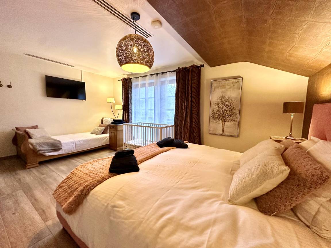 In der 2. Etage: 3x Schlafzimmer mit Doppelbett, TV , Schlafzimmer mit Einzelbett, Doppelbett, TV , Badezimmer mit Dusche, Waschbecken, Toilette, Föhn , Badezimmer mit Badewanne, Waschbecken, Föhn