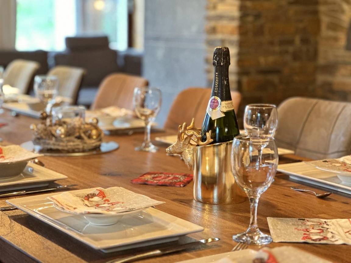 Hausbeschreibung : Sie werden einen außergewöhnlichen Aufenthalt in diesem Holzchalet mit seinem gemütlichen Wohnzimmer und dem großen Tisch in der Mitte verbringen. Eine voll ausgestattete Küche, ein Videoprojektor und ein finnischer Ofen im Wohnzimmer stehen Ihnen für einen gemütlichen Abend zur Verfügung!