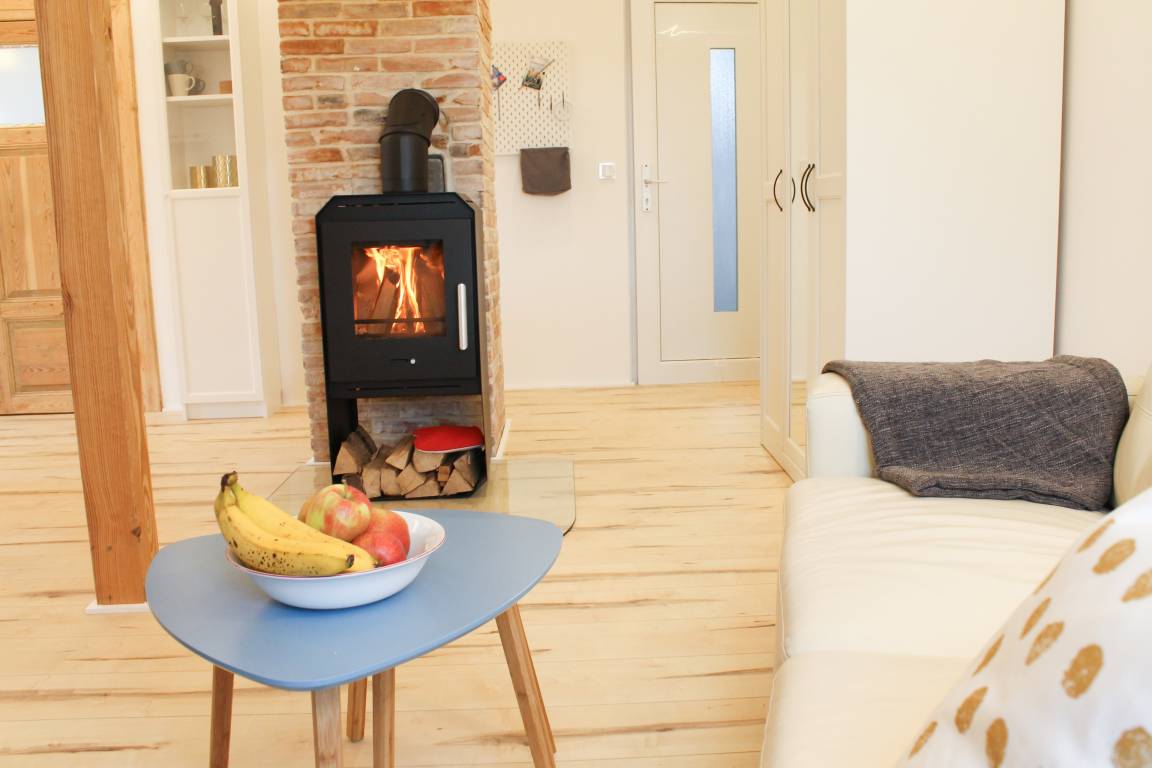 Diese bietet einen Schlafbereich mit Doppelbett (1 Matratze 140 x 200 cm), einen Wohnbereich mit Fernseher und Kaminofen, eine offene Küche mit Herd, Kühlschrank, Spülmaschine und allem notwendigen Küchenzubehör, einen Essbereich sowie ein geräumiges Duschbad. Für den entspannten Urlaub können Bettwäsche und Handtücher dazu gebucht werden. Zudem stehen Ihnen ein Parkplatz vor dem Haus und eine kleine Terrasse im Garten zur Verfügung.