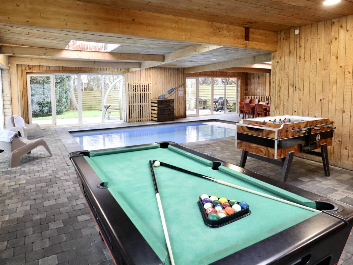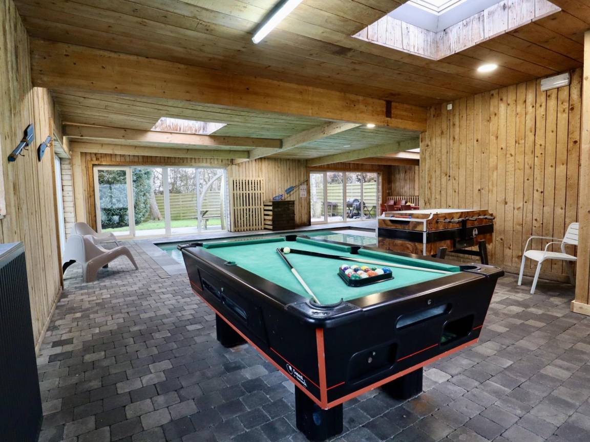Hausbeschreibung : Dieses Ferienhaus verfügt über ein herrliches Hallenbad in einem Entspannungsraum mit Sauna, sowie Kicker und Billard! Im Sommer können Sie auch auf der Terrasse grillen! Mit dem Wohnzimmer direkt neben dem Pool und der Küche in der Nähe kann jeder seinen Aufenthalt genießen, ohne weit von seinen Freunden entfernt zu sein, während er zum Beispiel köstliche Mahlzeiten zubereitet. Schließlich tragen 4 schöne Schlafzimmer und ebenso viele Bäder zum Komfort des Hauses bei