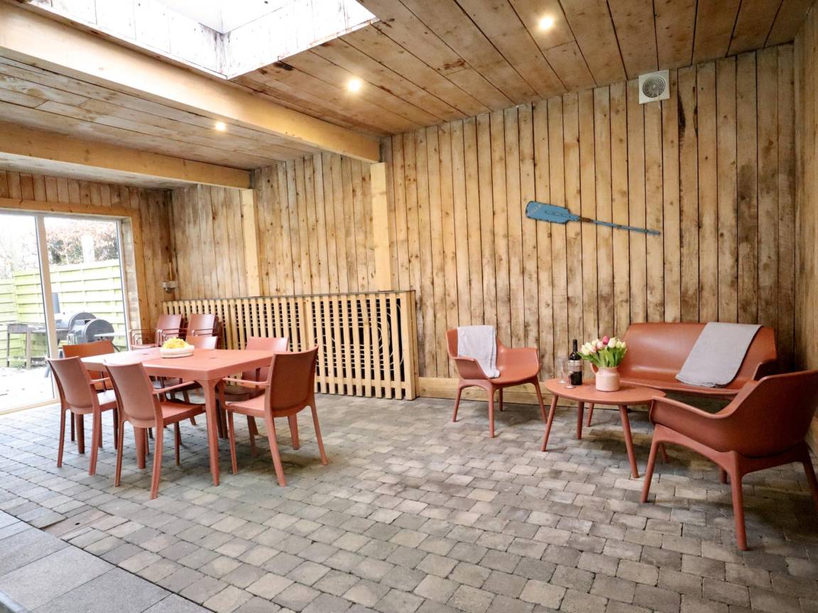 Layout : Parterre(privater Eingang): Aufenthaltsraum mit TV , Esszimmer mit Esstisch , offene Küche mit 4x Kochplatte(Gas), Wasserkocher, Kaffeemaschine(Filter), Kaffeemaschine(senseo pads), Backofen(elektrisch), Mikrowelle, Geschirrspüler, Tiefkühlschrank , Schlafzimmer mit Badezimmer mit 2x Einzelbett(Bettdecke, 90 x 200 cm), Waschbecken, Dusche, Toilette , Freizeitraum mit Tischfußball, Billard , Ruheraum mit Dusche, Sauna, Toilette , Pool(alleinige Nutzung, erwärmt, innen, umzäunt, 8 x 4 m., Tiefe: 1.5m, Ganzjährig geöffnet)