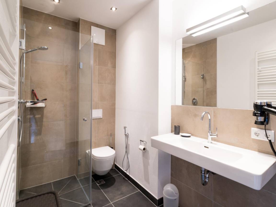 Layout : In der 1. Etage: Wohnzimmer mit Doppelschlafcouch, TV, Balkon , offene Küche mit Wasserkocher, Toaster, Kochherd(Ceranfeld), Kaffeemaschine(Filter), Backofen, Mikrowelle, Geschirrspüler, Kühl-/Gefrierkombination , 2x Schlafzimmer mit Doppelbett(180 x 200 cm) , Schlafzimmer mit Badezimmer mit Doppelbett(180 x 200 cm), Dusche, Waschbecken, Toilette, Balkon , Badezimmer mit Dusche, Waschbecken, Toilette