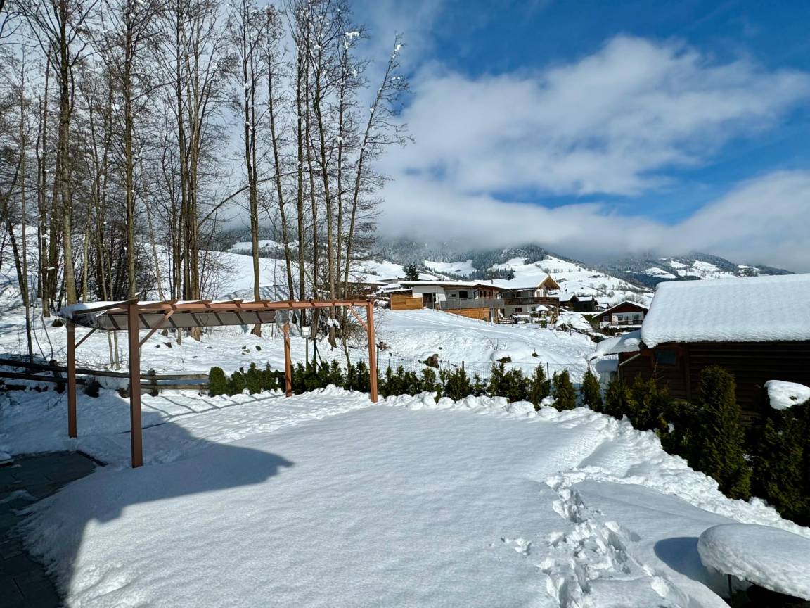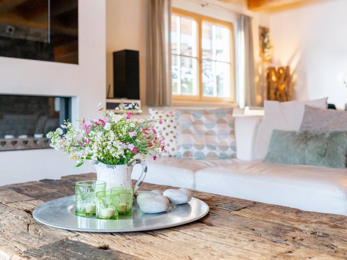 Das geräumige, gemütliche und stimmungsvolle Wohnzimmer und die voll ausgestattete Küche befinden sich im ersten Stock mit direktem Zugang zum Garten. So können Sie das schöne Panorama noch besser genießen. Das Wohnzimmer ist in einem ländlichen Stil mit viel Holz eingerichtet. Sie können in den beiden "österreichischen" Essecken oder am langen Holztisch essen oder sich unterhalten. Insgesamt stehen fünf Schlafzimmer zur Verfügung, von denen eines als Hauptschlafzimmer mit eigenem beheizten Südbalkon eingerichtet ist. Fast alle Schlafzimmer (vier) haben ein Badezimmer mit Dusche und Toilette. Außerdem gibt gibt es einen Wellnessbereich für die ultimative Entspannung. Das Chalet verfügt über überdachte Parkplätze, einen privaten Garten mit mehreren sonnigen Terrassen und Außendusche. Der nächste Supermarkt ist zu Fuß zu erreichen. Die Lage ist sowohl im Sommer als auch im Winter sehr zentral. In wenigen Autominuten erreichen Sie die beliebten Skigebiete von Zell am See, Kaprun oder den verschneiten Gletscher des Kitzsteinhorns (3029m). Auch im Sommer bietet die Gegend viele Möglichkeiten zum Golfen, Wandern, Schwimmen oder Radfahren. Kurzum, der ideale exklusive Ort, ganz in der Atmosphäre, um einen wohlverdienten Urlaub zu genießen!"