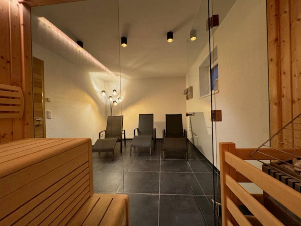 Keller: Ruheraum mit Dusche, Sauna, Liegestühle , Skiabstellraum mit Skischuhheizung , Wäschetrockner, Waschmaschine