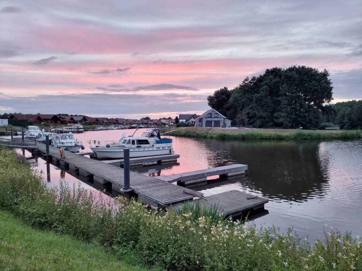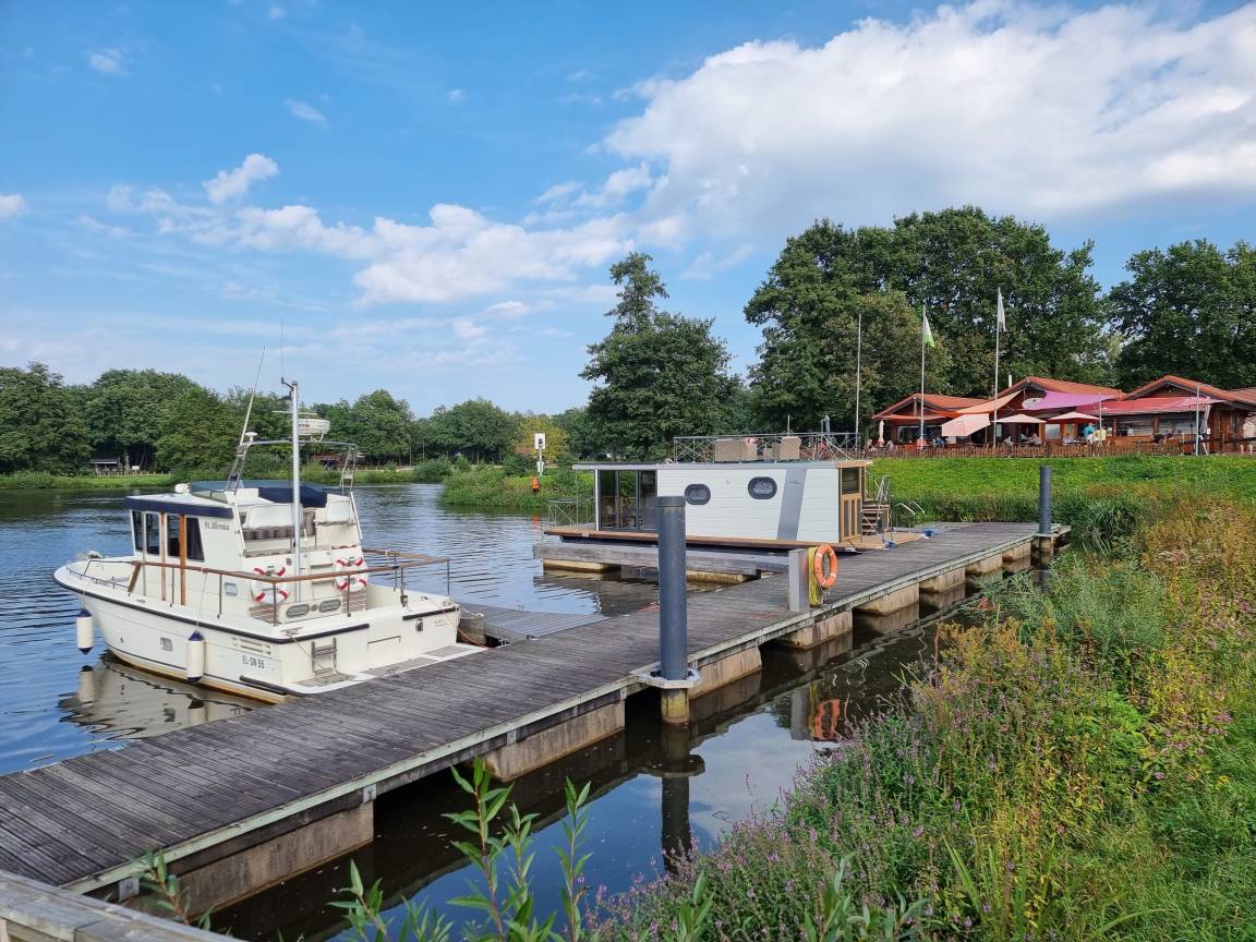 Rund um den Hafen befinden sich etliche schmucke Ferienhäuser. Sie können hier sowie an der Ems hervorragend spazieren gehen und Rad fahren. Der Ems-Rad-Weg führt am Haus vorbei ... normalen Straßenverkehr gibt es hier keinen, nur Anlieger dürfen in den Park.