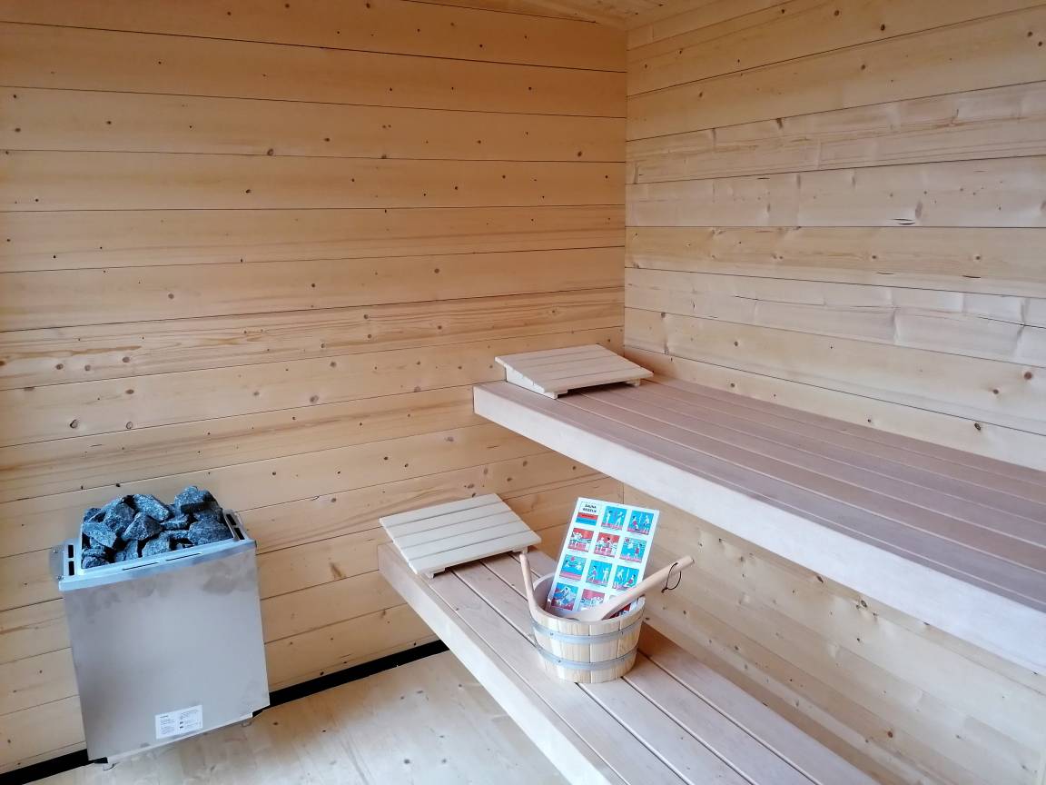Im benachbarten Seepark ist wenige Minuten zu Fuß ein kleines, warmes Indoor-Schwimmbad (ca. 9 x 4 m) inklusive finnischer Sauna buchbar vor Ort. Im Ferienhaus selbst gibt es keinen eigenen Pool.