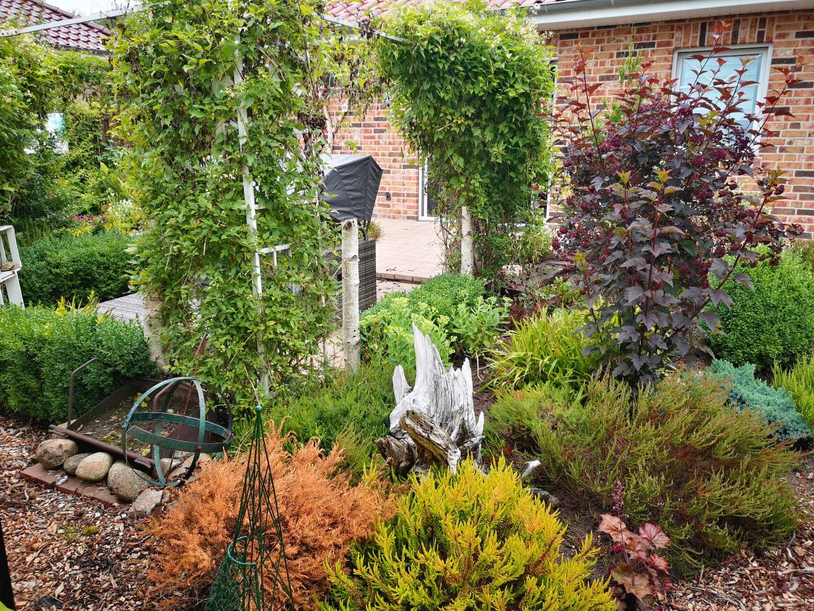 Im Garten erwartet Sie ein Pavillon und eine Panorama-Außensauna mit Blick in den idyllischen Staudengarten. Genießen Sie Ruhe und die schöne Gartenatmosphäre mit Blick über die Felder.