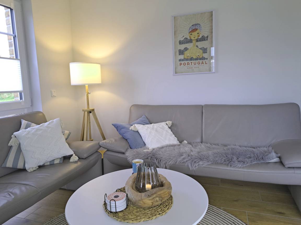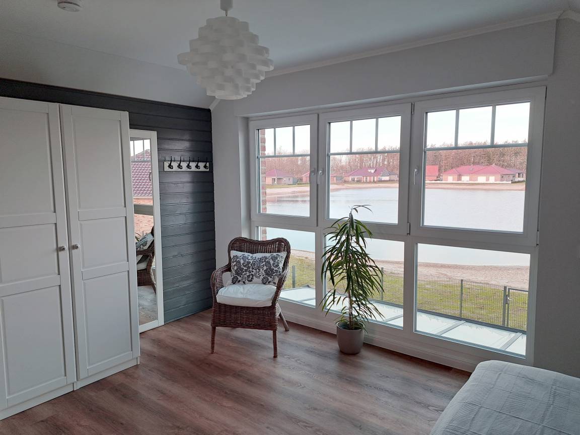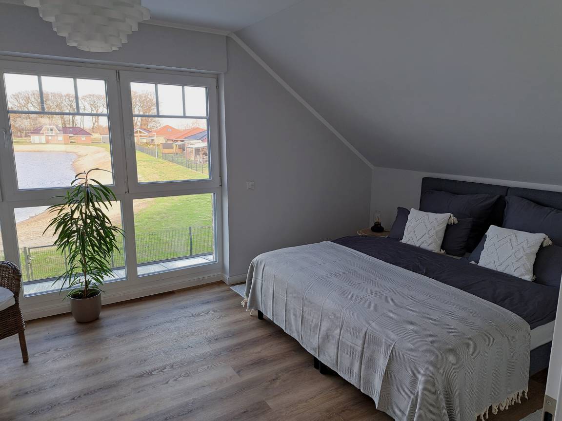 Das Haus ist modern und geschmackvoll eingerichtet. Das große Schlafzimmer im OG hat einen Mega-Blick über den Badesee. Das Wohnzimmer sowie das tolle Schlafzimmer im OG verfügen jeweils über einen Smart-TV.