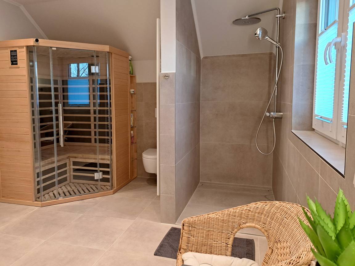 1 Wellness-Bad mit Dusche, Whirlwanne und Infrarotsauna im OG