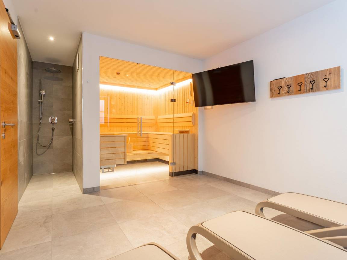 Keller: Ruheraum mit Dusche, Sauna(alleinige Nutzung) , Skiabstellraum mit Skischuhheizung , Wäschetrockner, Waschmaschine