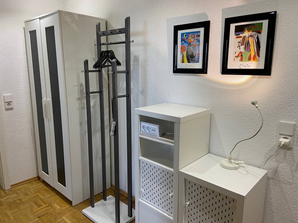 Diele mit Garderobe, Vorratsschrank Hygiene, Reinigungsutensilien Verbandstasche, Weiterhin mit Ganzkörper Spiegel sowie Ablagesideboard mit USB Ladesteckdosen