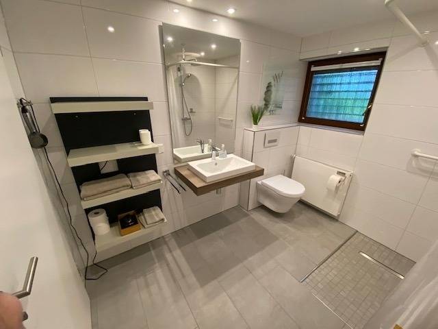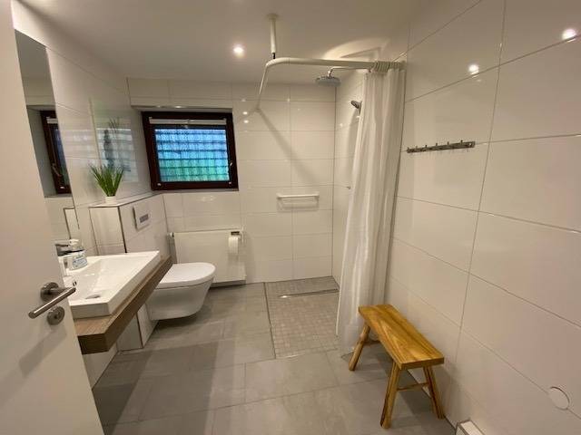 Tageslicht Bad bodenebene Dusche, Komfort WC mit Aktivkohle Luftfilter