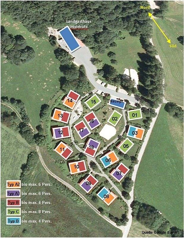Das in Holzbauweise gebaute Ferienhaus Typ B2 ist ein 2-Zimmer-Maisonette-Appartementhaus für max. 4 Personen (ca. 50 qm, 1 Kinderbett für ein Kleinkind bis 2 Jahre kann zugebucht werden).