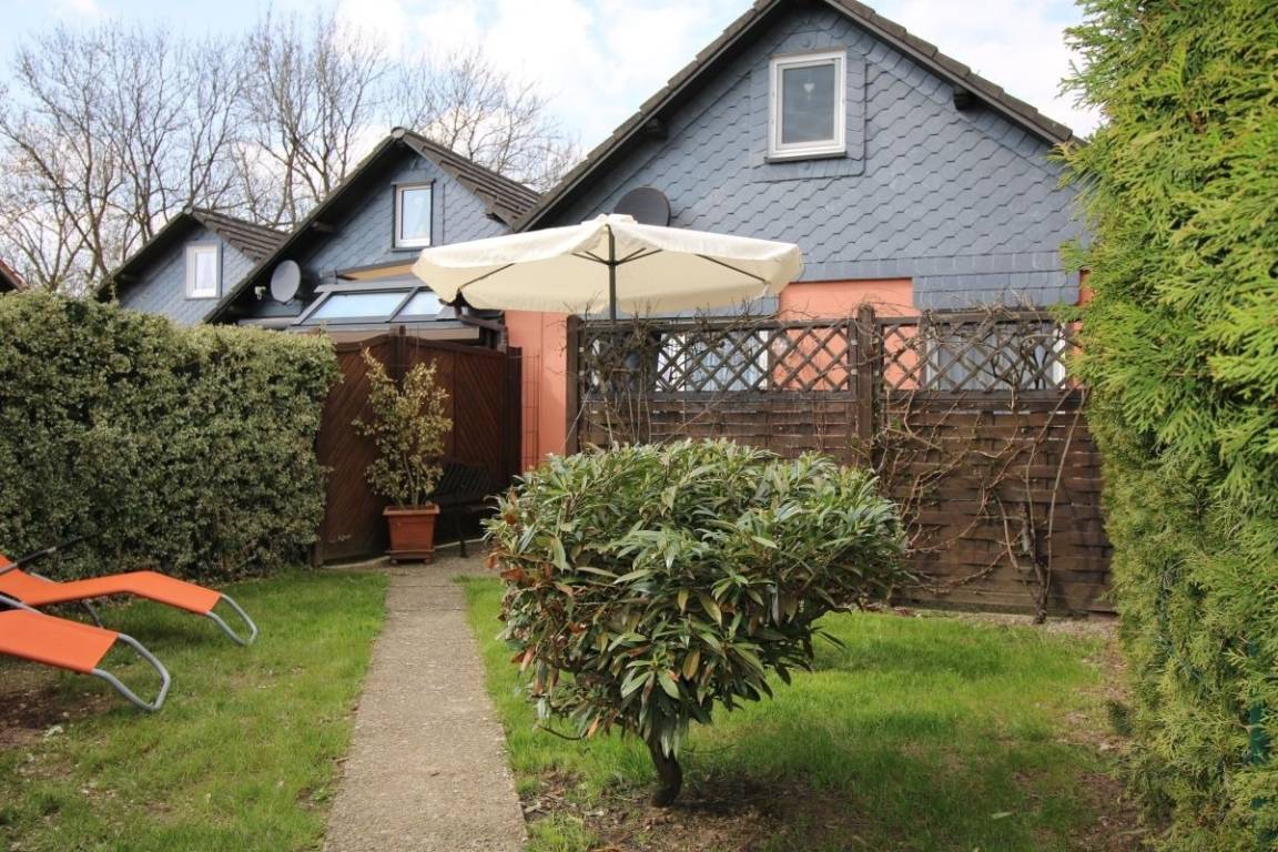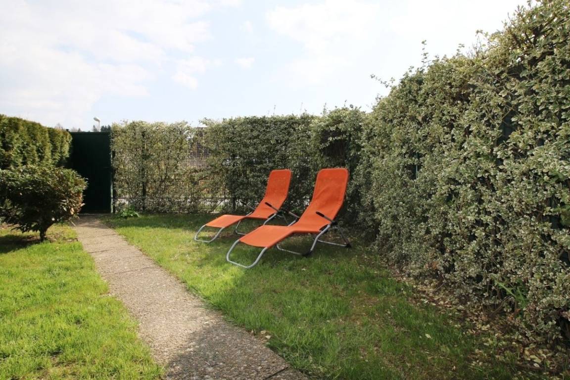 Die Terrasse ist vom Wohnzimmer aus begehbar und bietet einen herrlichen Blick in idyllischen kleinen Garten der komplett eingezäunt ist. Es stehen Ihnen kostenlos Gartenmöbel zur Verfügung.