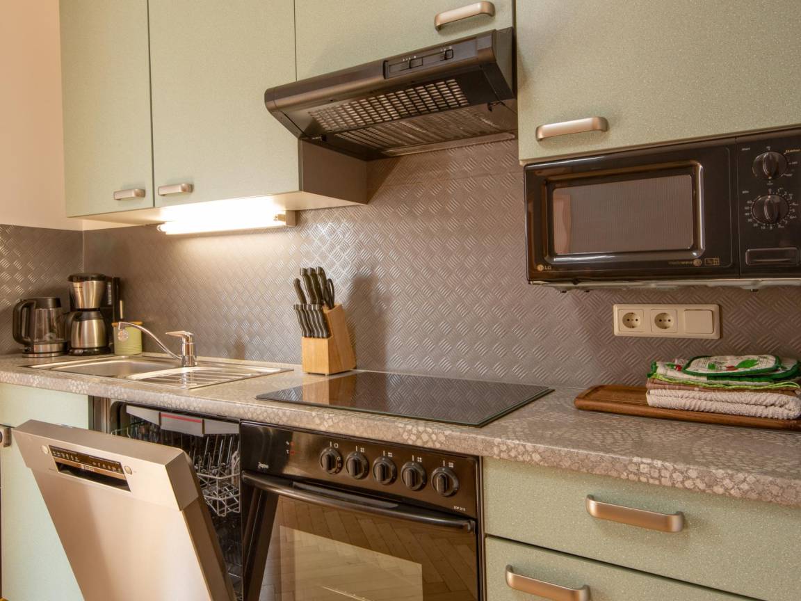 Layout : Parterre: Eingang(von außen erreichbar), Wohnzimmer mit TV(Flatscreen, Satellit), Sitzecke, Radio , Küche mit Esstisch, Wasserkocher, Toaster, Kochherd(4 Kochplatten, Ceranfeld), Dunstabzugshaube, Kaffeemaschine(Filter), Backofen, Mikrowelle, Geschirrspüler, Kühl-/Gefrierkombination, Zitruspresse , 2x Schlafzimmer mit Doppelbett(180 x 200 cm), Fliegengitter , Badezimmer mit Dusche, Waschbecken, Föhn , Toilette mit Waschbecken, Toilette