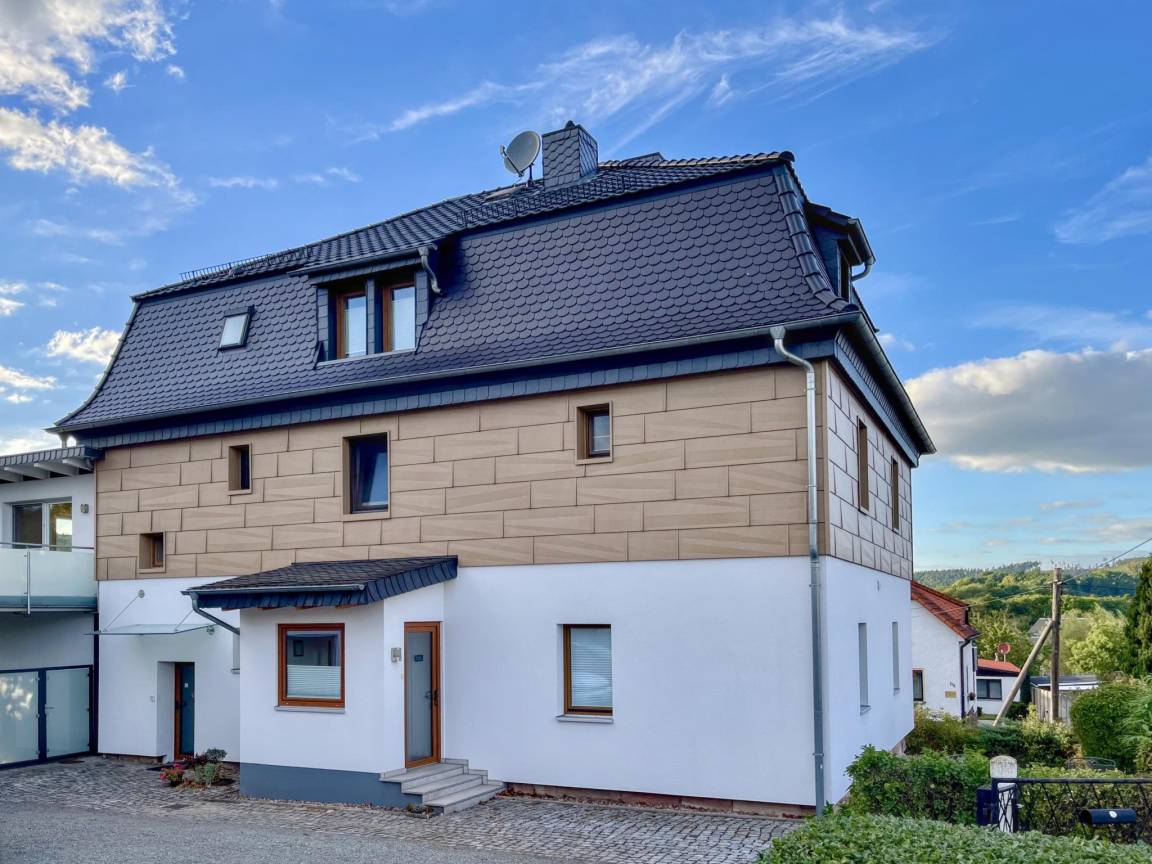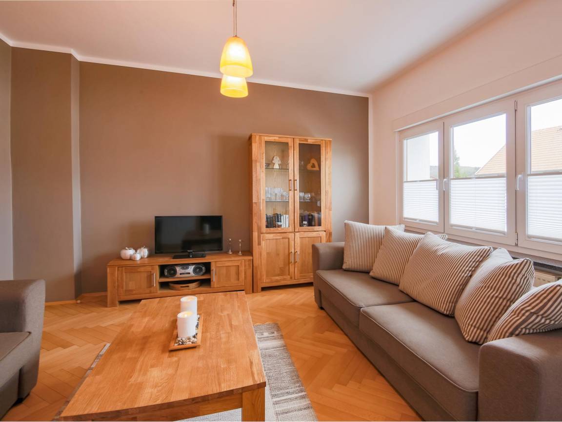 Hausbeschreibung : Übernachten Sie in einer charmant restaurierten Erdgeschosswohnung im Thüringer Wald. Sie betreten die Wohnung über einen eigenen Außeneingang. Warme Holzböden, stilvolle Holzmöbel und helle Räume sorgen für eine einladende Atmosphäre. Die Terrasse mit Gartenmöbeln und Grill lädt zum Entspannen im Grünen ein. Historischer Charme und moderner Komfort vereinen sich hier zu einem idealen Rückzugsort für Paare, Familien oder Freunde