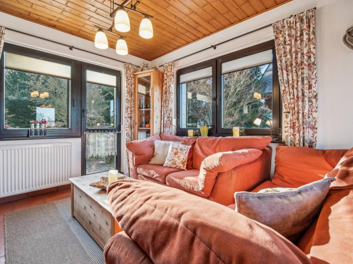 Hausbeschreibung : Dieses charmante Ferienhaus in Fischbach (Waltershausen) ist ideal für erholsame Urlaubstage im Thüringer Wald. Im Wohnzimmer sorgt ein Kaminofen für gemütliche Abende, im Keller lädt die Sauna zu entspannenden Stunden ein. Die sonnige Terrasse mit Blick ins Grüne bietet den perfekten Platz zum Verweilen. Eine gut ausgestattete Küche und die liebevolle Einrichtung schaffen eine warme Atmosphäre – ein Rückzugsort für Gäste, die Ruhe, Komfort und Natur gleichermaßen schätzen