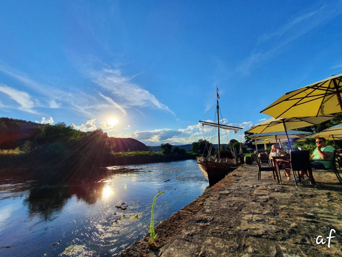 Meter entfernt vom "historischen Hafen" direkt an der Werra mit dem wunderschönen Ausflugsrestaurant Zur Schlagd und bietet einen schönen Ausblick auf einen grossen Garten gegenüber, in welchem Tiere frei umher laufen. Ein Emu, Hirsche, Rehe, ein Wildschwein und abends hört man das Rufen der Pfaue.