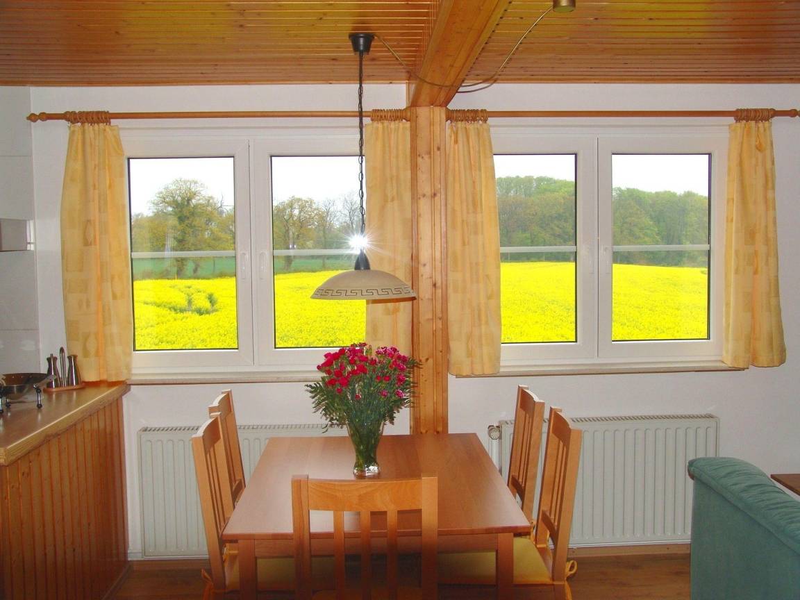 Die gemütlich eingerichtete Wohnung befindet sich im ersten Stock, hat einen separaten Hauseingang und ist über eine Treppe erreichbar. Die Wohnung selber erstreckt sich über 2 Etagen, wobei in der oberen Etage 2 Schlafzimmer befinden. In einem der Schlafzimmer befindet sich ein Doppelbett mit 2 separaten Matratzen und Lattenrost und in dem anderen Zimmer 3 hintereinander geschaltete vollwertige Betten. Beide Zimmer haben Verdunklungsrollos. Der Wohnbereich teilt sich auf in Küche und Wohnzimmer. Von hier geht es auch ins Badezimmer mit Dusche und WC. Die Küche ist voll ausgestattet mit Herd und Backofen, Kühl und Gefrierschrank und einer Spülmaschine. Das Wohnzimmer hat einen separaten Essbereich und eine gemütliche Sofa-und Sessellandschaft mit Fernseher und Holzofen.