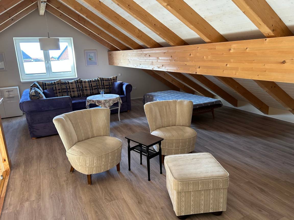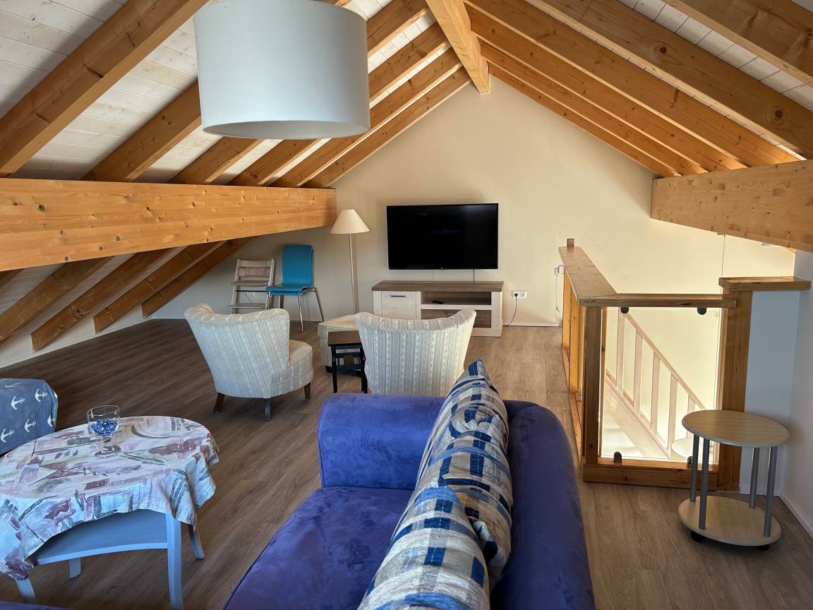 Im OG finden Sie unter dem Dach eine kleine lauschige abgetrennte Schlafecke mit einem 1,40m fußbodennahem Bett (ideal für die Jugend) und eine weitere Schlafmöglichkeit unter der Schräge oder Sie ziehen die Couch aus . Natürlich gibt es auch hier eine gemütliche Sitzmöglichkeit mit großen TV.