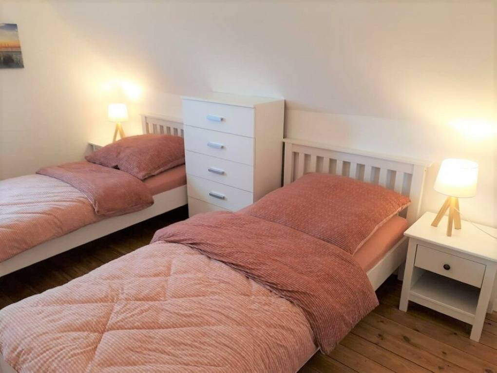 „Die Dopplehaushälfte hat uns sehr gut gefallen. Sehr ruhige Wohnlage. Wir werden auf jeden Fall wiederkommen. Für eine Familie mit Kleinkind fehlt in der oberen Etage allerdings ein Kindergitter da die Treppe nach unten sehr steil ist.“