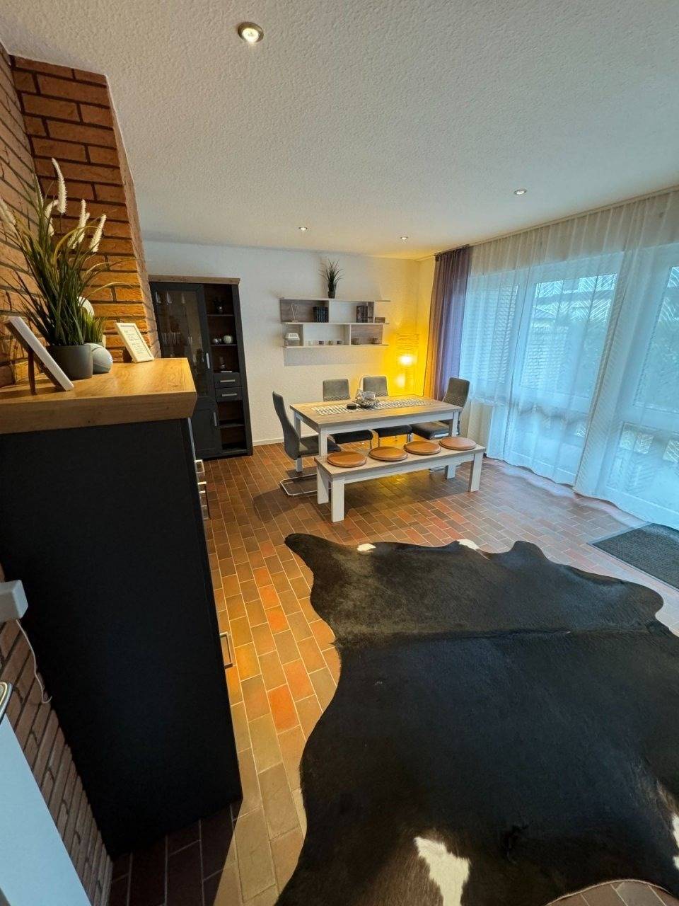 Hier wurde von Grund auf alles erneuert und mit viel Liebe zum Detail ausgestattet. Das Haus hat ein Doppelschlafzimmer und ein Kinderzimmer mit Etagenbett. Das Zentrum des Hauses ist der lichtdurchflutete Wohn- Ess- und Küchenbereich - hier ist alles hochwertig ausgesucht und lädt zum erholsamen Aufenthalt ein. Die moderne Einbauküche lässt keine Wünsche offen und ist mit allen wichtigen Geräten und Utensilien ausgestattet - Mikrowelle, Backofen, Kühl-Gefrierkombination, Kaffeemaschine etc. Optional kann als besonderes Highlight ein Thermomix TM 6 zur eigenen kulinarischen Entfaltung zum Aufenthalt dazu gebucht werden. Der großzügige Essbereich mit Blick in den Garten - mit Südausrichtung - bietet viel Platz für Speisen, Spielen oder Arbeiten. Der gemütliche Wohnzimmerbereich lädt zum entspannten Fernsehabend ein. Eine Alexa Sprachbox ist vorhanden. Eine Waschmaschine und ein Wäschetrockner befinden sich im Abstellraum des Hauses und sind kostenlos nutzbar. Das, nicht einsehbare, Grundstück besticht durch eine großzügige, überdachte Terrasse mit Sitzbereich sowie im Garten einer drehbaren "Himmelsliege" für bis zu 3 Personen. Fahrräder können im Schuppen untergestellt werden und ein PKW-Stellplatz ist in unmittelbarer Nähe für Sie reserviert.