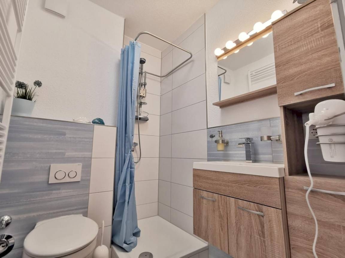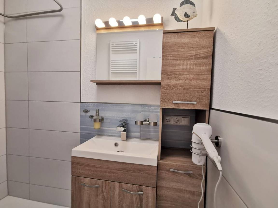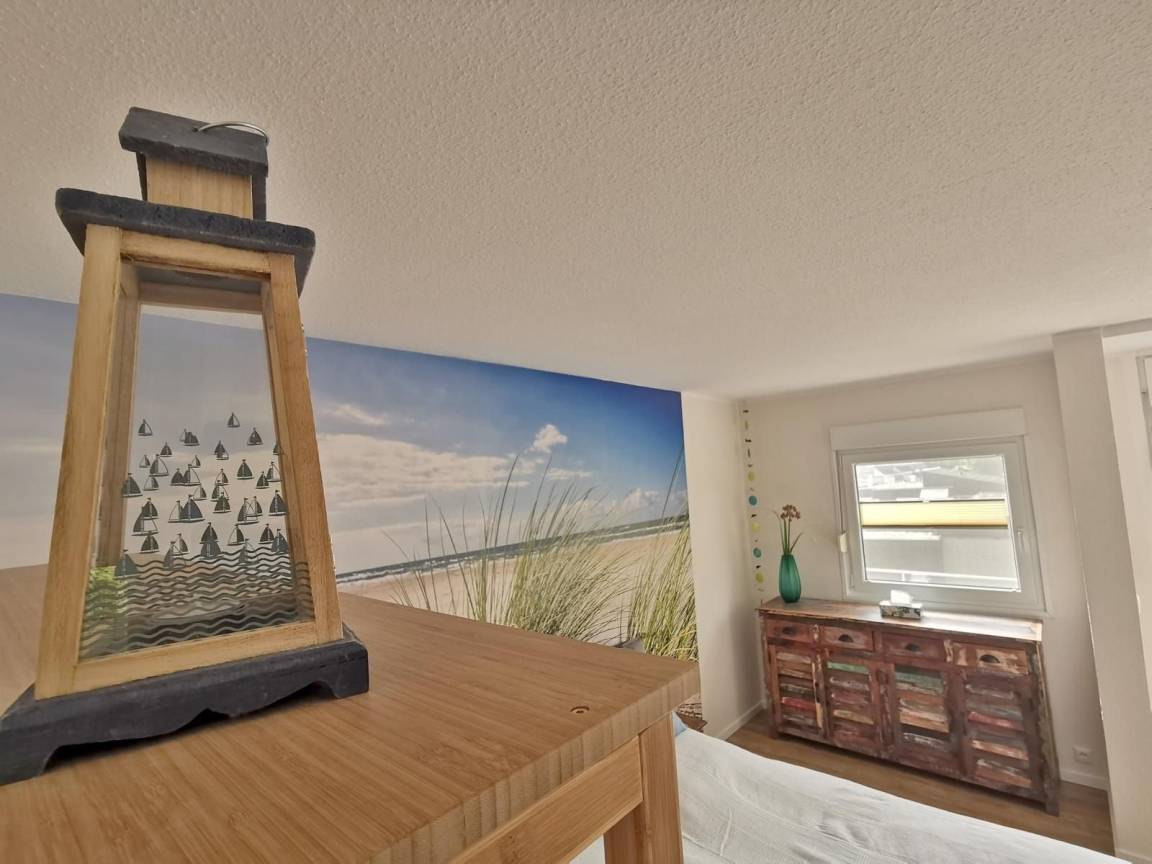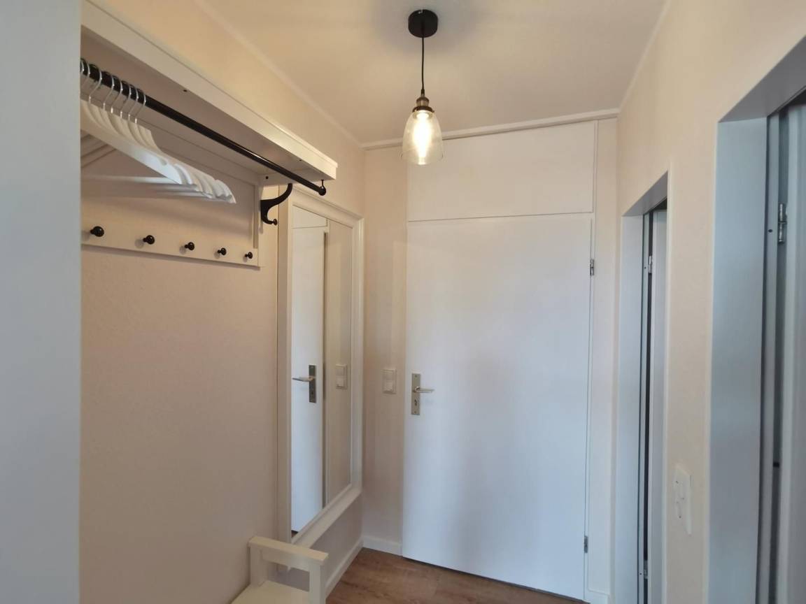 Die Ferienwohnung 46 für 2-3 Personen mit natürlichem und maritimen Flair liegt im Herzen von Horumersiel in einer ruhigen Feriensiedlung.Das Nordseeheilbad Horumersiel bietet Ihnen für Ihren Urlaub, oder nur für die kleine Auszeit zwischendurch, die ideale Kulisse für entspannte Tage im Wangerland an der Nordsee. Hier können Sie Schiffe beobachten, sich bei vielen Wellness-Angebote entspannen oder einen gemütlichen Tag am Strand verbringen. Horumersiel hat aufgrund der perfekten Lage an der Innenjade ein einzigartiges maritimes Reizklima, welches sich heilend auf Körper und Geist auswirkt. Die Ortsmitte, mit allen Einkaufsmöglichkeiten für den täglichen Bedarf, Cafés und Restaurants, erreichen Sie bequem zu Fuß in nur 5 Minuten.Die Wohnung verfügt über 1 großes Zimmer, mit Wohnbereich, Schlafbereich, einer Küche, einem Bad mit Dusche und einem Balkon. Die Wohnung ist offen, hell und modern gehalten.Von Balkon und Wohnzimmer verfügen Sie einen weiten Blick über Felder und Wiesen und können die untergehende Sonne genießen. Für Allergiker ist die Wohnung perfekt geeignet, da sie allergikergerecht ausgestattet ist und 2020 neu saniert, modernisiert und renoviert wurde.Die Wohnung verfügt über kostenloses WLAN, einen großen Flachbildschirm, großes Polsterbett 180x200, einen großen Esstisch für 4 Personen und einem Strandkorb am Strand von Horumersiel.Eigener Strandkorb in Horumersiel :-)