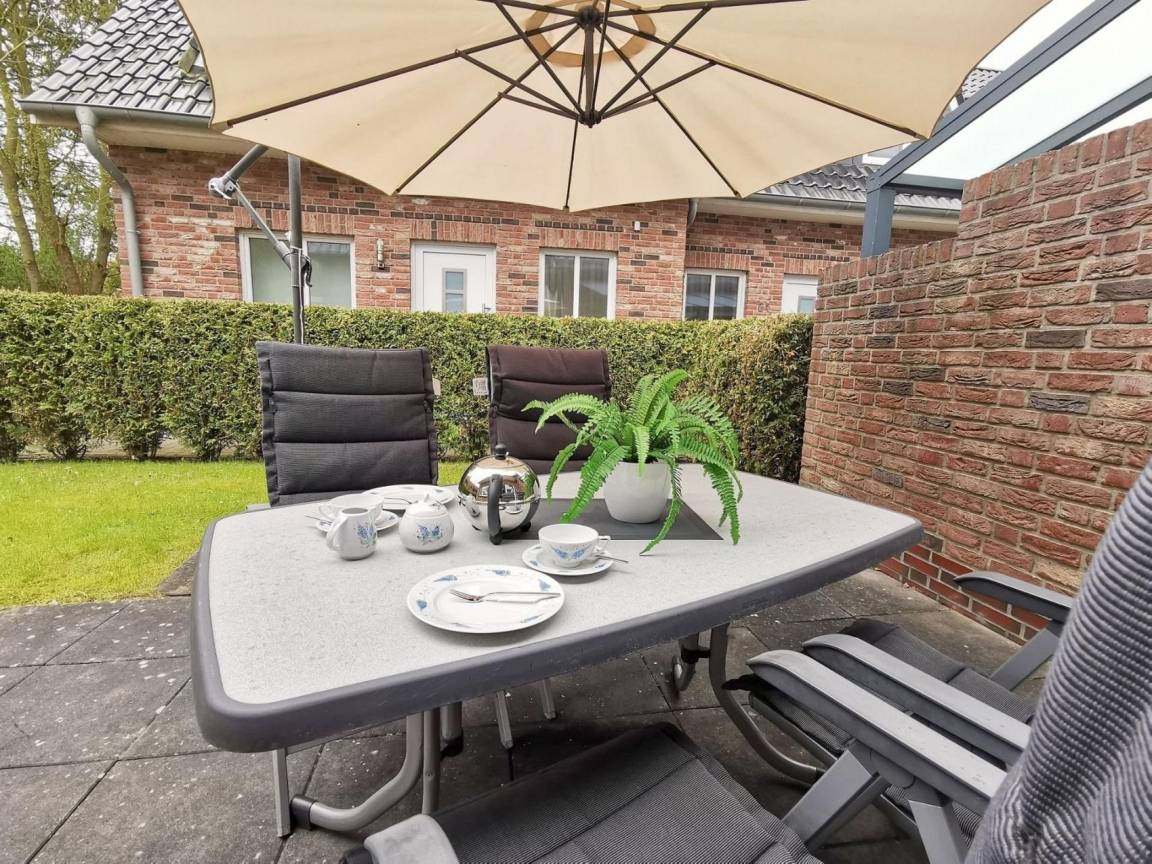Erfüllen Sie sich Ihre Urlaubsträume und erholen Sie sich im liebevoll eingerichtetem Ferienhaus Tönsing in Horumersiel. Die stilvolle Detailabstimmung gefällt. Das Ferienhaus (Reihenendhaus, Neubau 2010) hat eine zentrale ruhige Lage Goldstraße 21, Horumersiel. Auf ca. 75 qm Wohnfläche finden 4 Personen bequem Platz. Ein Kinderreisebett und Kinderhochstuhl sind im Haus. Im Erdgeschoss befindet sich die Diele mit Garderobe, ein Gäste-WC, eine Küche (voll ausgestattet) Geschirrspüler, 4 Platten-Herd mit Ceranfeld und Backofen, Mikrowelle, Kühlschrank mit großem Gefrierfach, 1 Tisch mit 2 Sitzplätzen, Radio mit CD-Player USB. Ein Hauswirtschaftsraum mit Schuhschrank, volle Putz- und Waschausstattung, Waschmaschine(kostenpflichtig), Gartenstuhlauflagen. Ein Wohnzimmer mit Essplatz 4-5 Pers. Couchgarnitur, Couchtisch, Schrankwand mit Flachbildschirm , 1 Fernsehsessel mit Hocker Designermöbel. Große Terrasse mit Gartenhaus: Komfortable Gartenstühle 2 davon zur Liege erweiterbar, eine Liege alles mit Auflagen-, 1 großer Gartentisch, 1 großer Sonnenschirm, 1 Säulengrill (Kohle), 1 Elektrogrill. Im Obergeschoss: Badezimmer mit Ganzglass-Dusche und WC, Spiegelschrank, Hängeschrank und diversen Ablagen. 1 Schlafzimmer mit Doppelbett, Sitzecke, Flachbildschirm-TV. Safe im Schrank. Das zweite Schlafzimmer mit 2 Einzelbetten, Kompakt Stereo-Anlage mit I-Pod /I-Phone Anschluss /USB ca. 10 qm. Der Parkplatz: komfortabel und bequem zum Aus- und Einladen, liegt direkt am Eingang. Das Haus, Erstbezug 2011, ist insgesamt modern, hell und freundlich eingerichtet und ausgestattet für 4 Personen. Alle Fenster sind mit Plissees versehen. Das Haus ist ein Nichtraucherhaus und Haustiere nicht erlaubt. W-LAN vorhanden!