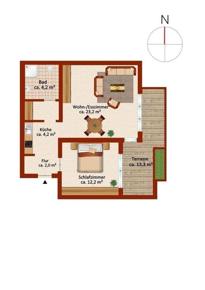45 m² Ferienwohnung ∙ 1 Schlafzimmer ∙ 2 Gäste