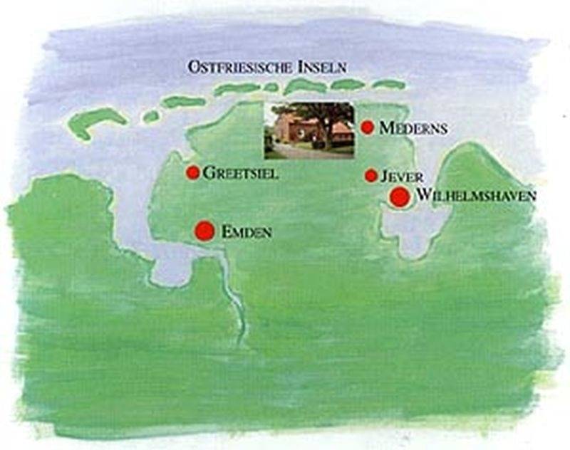Der voll bewirtschaftete Milchviehbetrieb mit Kühen, Kälbern, Katzen und unserer alten Hofhündin "Ilka", die nun von "Aika" unterstützt wird, liegt ruhig in Mitten malerischer Landschaft und doch mitten im kleinen Dorf Mederns, ca. 10 Autominuten von der Nordseeküste entfernt. Direkt im Ort finden Sie übrigens ein empfehlenswertes Restaurant.