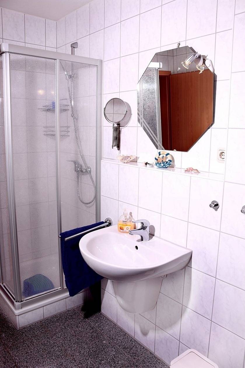 Unsere Ferienwohnung 16 befindet sich in der zweiten Etage vom Apartmenthaus im Strandweg 9.Diese Wohnung bietet auf zwei Etagen und 70 qm ausreichend Platz für 4 Personen. Auf der ersten Ebene befindet sich das große Tageslichtbad mit Dusche, WC, Waschbecken und Fussbodenheizung. Die Küchenzeile mit Esstresen ist mit Ceranfeld, Herd, Kaffeemaschine, Toaster, Mikrowelle und sämtlichen Zubehör ausgestattet. Am Esstisch mit Stühlen und einer Bank, finden 6 Personen Platz. Die Wohnzimmerecke hat eine Couch-Garnitur mit Tisch, 2 Sessel, Kommode und Flachbild -TV.Auf gleicher Etage befindet sich ein Schlafzimmer mit einem Doppelbett, einer Kommode und einem Kleiderschrank. Vom Wohn/ Essbereich gelangt man auch auf beide großen Balkone.Auf der zweiten Etage befindet sich ein großzügiges Schlafzimmer mit deinem Doppelbett. Hinter dem Glasgiebel stehen 2 Relaxsessel und laden zum Relaxen, Lesen oder Aussicht genießen ein. Von hier schaut man direkt auf den Deich und die Nordsee.