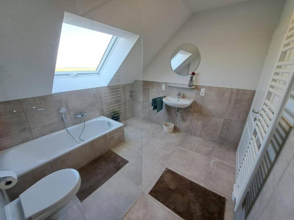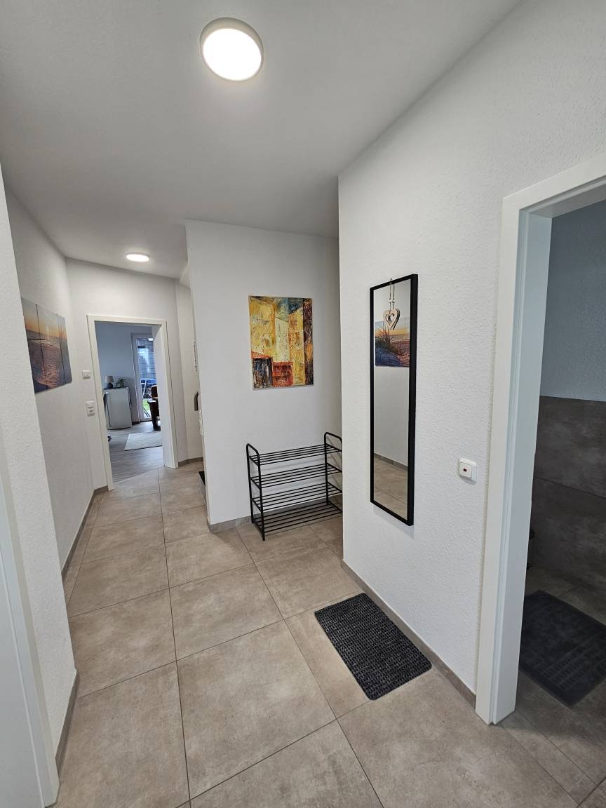 Unser Ferienhaus liegt nur 150 Meter vom Wasser entfernt und bietet Platz für bis zu sechs Personen sowie Ihre Haustiere. Das Erdgeschoss umfasst eine geräumige Wohnküche mit bodentiefen Fenstern, die einen direkten Zugang zur großzügigen Terrasse ermöglichen. Zusätzlich gibt es ein Gäste-WC, einen breiten Flur mit Garderobe und einen Hauswirtschaftsraum mit Waschmaschine. Im Obergeschoss befinden sich drei gemütliche Schlafzimmer sowie ein Badezimmer mit einer begehbaren Dusche und einer Badewanne.