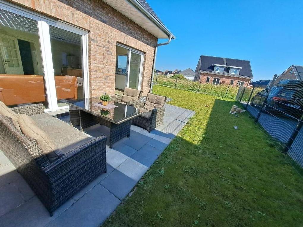 Alle Fenster sind mit elektrischen Rollläden ausgestattet, einschließlich der Velux-Fenster. Das Ferienhaus verfügt über einen eingezäunten Garten, ideal für Haustiere, eine große Süd-Terrasse und einen Stellplatz direkt am Haus. Über einen privaten Weg erreichen Sie nach 150 Metern das Wangermeer, einen beeindruckenden 100 Hektar großen Freizeitsee. Dort können Sie schwimmen, angeln oder Wassersportarten wie Stand-Up-Paddling (SUP) ausprobieren. Direkt am Wangermeer gibt es zudem die Möglichkeit, Fußballgolf zu spielen.