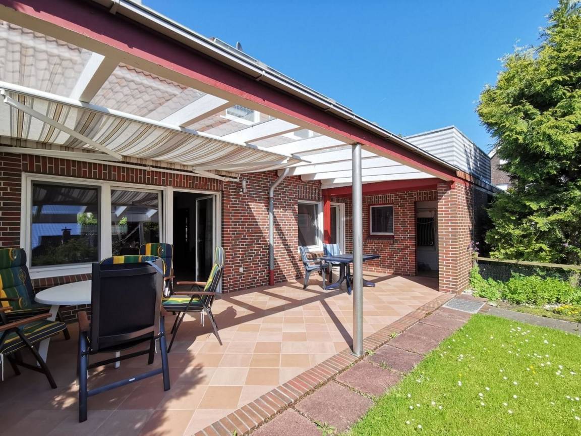 Diese große Erdgeschosswohnung bietet viel Platz mit insgesamt 3 Schlafzimmern ( 2 x Doppelbett, 1 Kinderzimmer mit Etagenbett und Babybett ). Ein großer Wohnraum mit Zugang zur überdachten Terrasse lädt zum gemütlichen Beisammensein ein. Der Essplatz für bis zu 6 Personen und die Einbauküche mit Backofen und Spülmaschine grenzen an den Wohnraum an. Ein Tageslichtbadezimmer mit Doppelwaschbecken, Dusche und WC sowie ein separates WC runden das Angebot ab. Es stehen 2 PKW-Stellplätze direkt am Haus zur Verfügung. Fahrräder können im Fahrradabstellraum untergestellt werden. Waschmaschine und Trockner sind im Haus vorhanden. Der Strand ist fussläufig in wenigen Gehminuten zu erreichen.