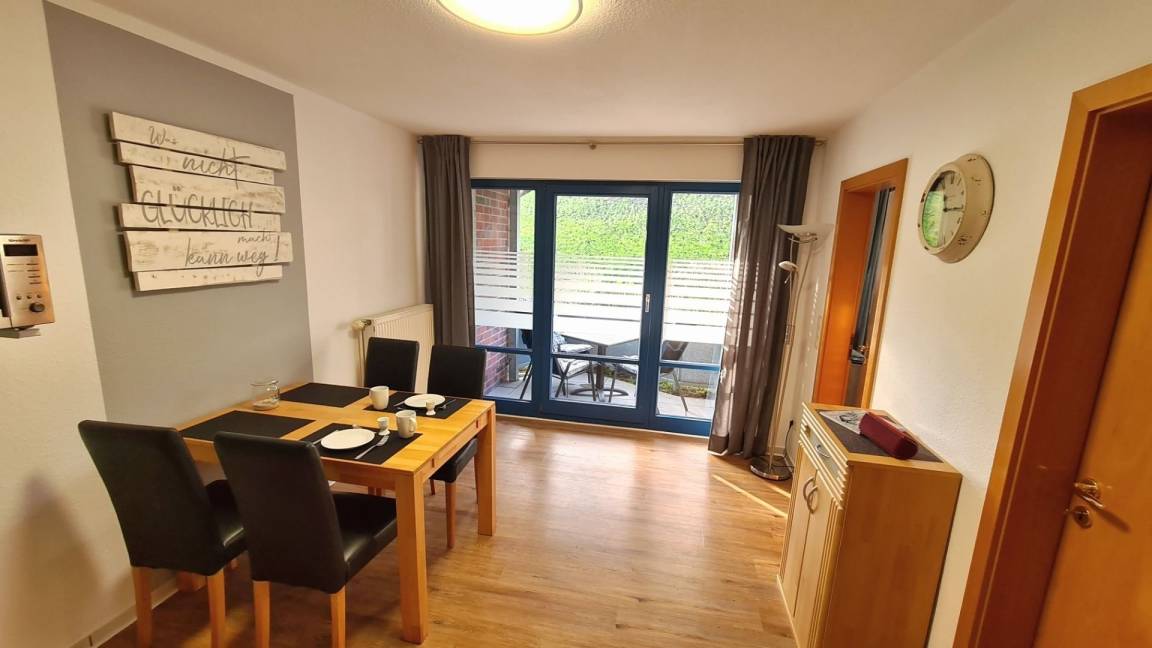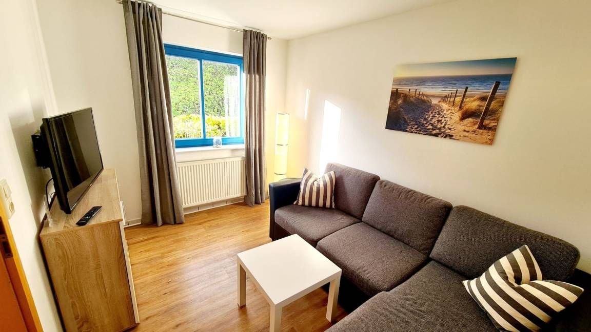 150 m bis zum BadestrandHorumersiel, mit Smart-TV und kostenlosen Netflix-ZugangUnsere gemütliche Ferienwohnung bietet Platz für bis zu 4 Personen.Das Wohnzimmer ist mit einen LCD-Fernseher und einem Schlafsofa für zwei Personen ausgestattet. Im neu renovierten Schlafzimmer erwartet Sie ein komfortables Boxspringbett (160x200) sowie ein moderner Smart-TV inklusive kostenlosem Netflix-Zugang. Die Wohnküche ist vollausgestattet mit 4 Herdplatten, einem Kühlschrank mit Gefrierfach, einer Microwelle, einem Toaster, einem Wasserkocher sowie einer Filterkaffeemaschine für einen perfekten Morgenkaffee.Das Badezimmer verfügt über eine erfrischende Dusche und einen Fön für Ihren Komfort. Genießen Sie sonnige Tage auf der Terrasse oder nutzen Sie das Thermalbad gegenüber.Außerdem verfügt unsere Ferienwohnung über einen eigenen PKW-Stellplatz sowie einen separaten Schuppen für Fahrräder und Fahrradträger damit Sie die Umgebung bequem erkunden können.