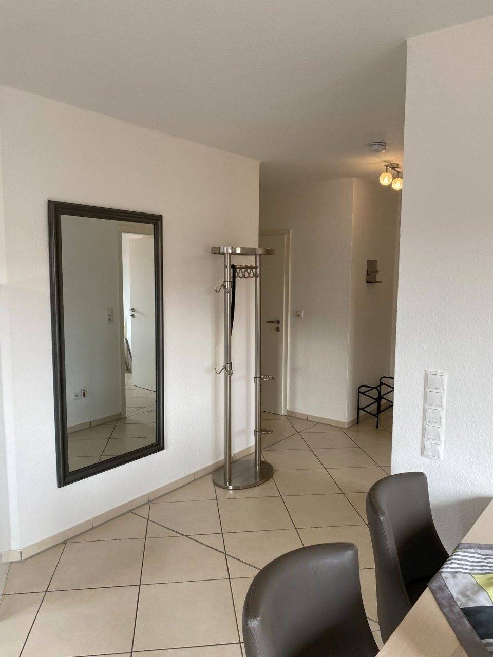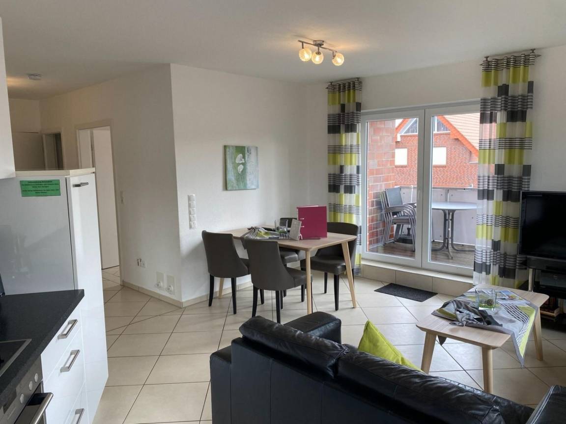 Modern und mit Liebe eingerichtet finden Sie hier im 1. Obergeschoss auf 67 qm alles, was für einen entspannten Urlaub für bis zu 4 Personen ( + Baby/Kleinkind ) benötigt wird.Ein großzügiger Flurbereich, ein Bad mit großer Dusche, WC, Waschbecken und Föhn, ein separates Gäste-WC, zwei Schlafzimmer ( das Erste ausgestattet mit Doppelbett, Kleiderschrank und Fernseher, das Zweite mit zwei Einzelbetten und Kleiderschrank ), sowie ein großer offener Raum mit Küche, Essplatz für 4 Personen und einem Wohnbereich mit Fernseher, DVD-Player und Gesellschaftsspielen lassen keine Wünsche offen.Das Badezimmer ist zusätzlich mit einer Fußbodenheizung ausgestattet.Für ungestörte Träume und Schutz vor Sonne, wenn gewünscht, sorgen in der gesamten Wohnung elektrische Jalousien.Es stehen Ihnen Internet und Kabelfernsehen zur Verfügung.Für die kleinsten Gäste sind ein Kinderreisebett und ein Hochstuhl vorhanden.Die Küche ist komfortabel ausgestattet und beinhaltet u. a. eine Kühl-Gefrierkombination, ein Herd mit Ceranfeld und Backofen, Mikrowelle, Toaster, Kaffeemaschine, Wasserkocher, Geschirrspülmaschine und noch vieles mehr, was man für die Zubereitung des Frühstücks oder Mittagessens benötigt.Die Sonne kann man auf dem großzügigen, nach Südwesten aufgerichteten Balkon genießen, der mit einem Gartentisch, 4 Stühlen und Sonnenschirm ausgestattet ist.Staubsauger, Waschmaschine, Wäscheständer, Bügeleisen, Bügelbrett usw. sind ebefalls in einem separaten Abstellraum in der Wohnung vorhanden.Die Wohnung ist eine Nichtraucherwohnung.Ein eigener PKW-Stellplatz und Fahrradabstellraum ( abschließbar ) befinden sich direkt am Haus.