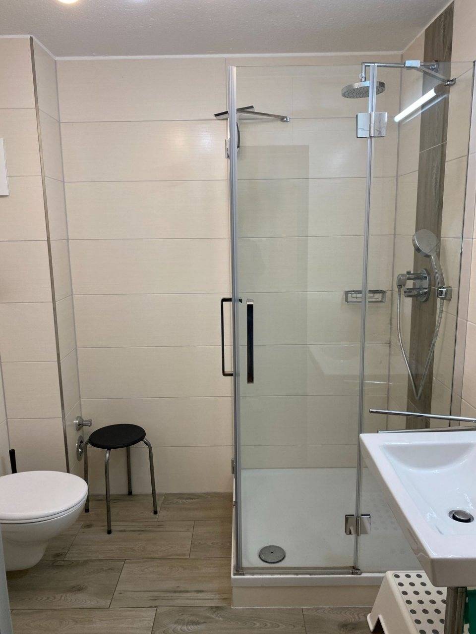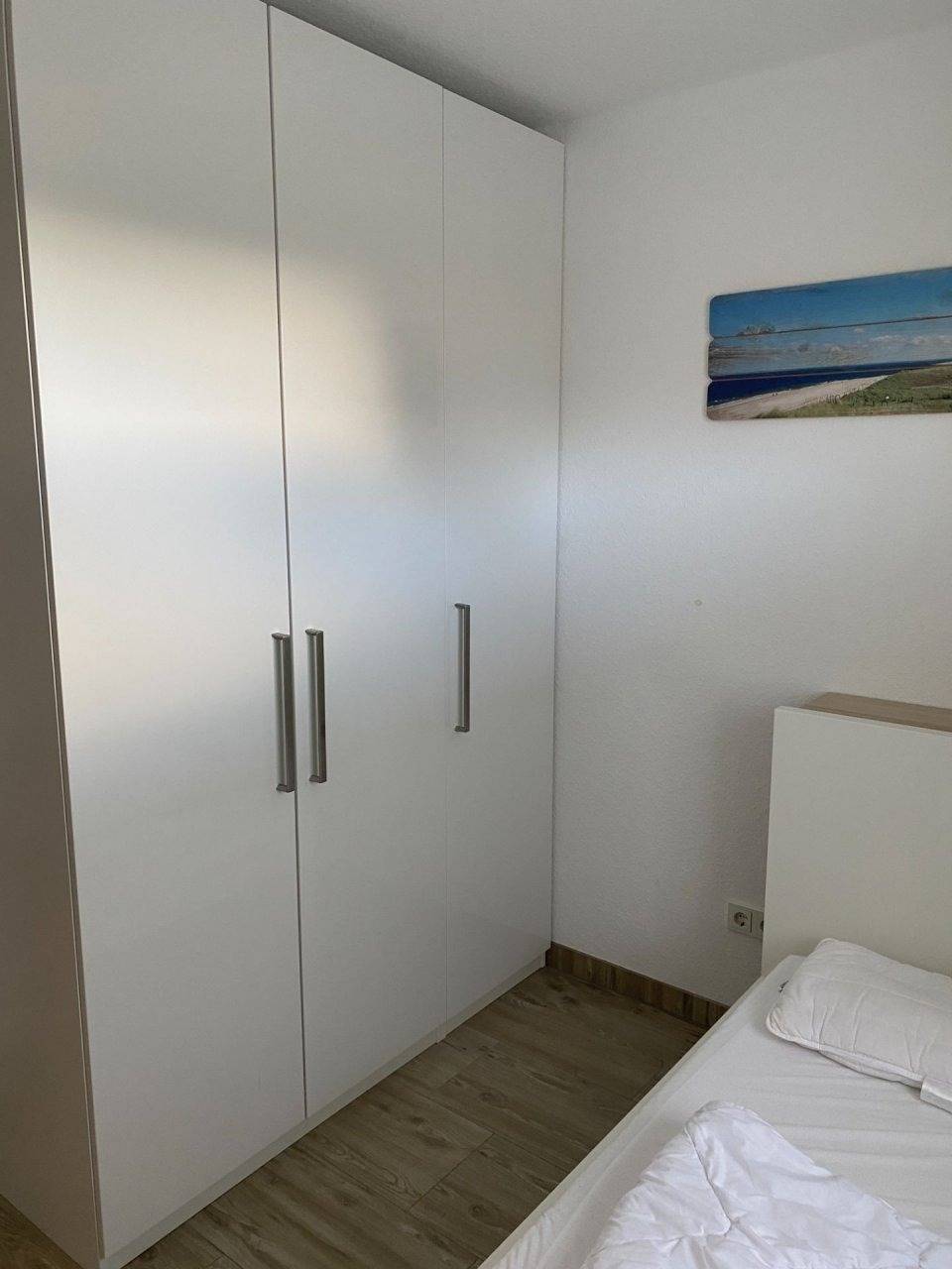 Modern und mit Liebe eingerichtet finden Sie hier im Erdgeschoss auf 55 qm alles, was für einen entspannten Urlaub für bis zu 3 Personen ( + Baby/Kleinkind ) benötigt wird.Ein großzügiger Flur, ein Duschbad mit Regenbrause und Föhn, zwei getrennte Schlafzimmer ( das erste ausgestattet mit Doppelbett, Kleiderschrank und Fernseher, das Zweite mit einem Einzelbett und Kleiderschrank ), sowie ein großer offener Raum mit Küchenzeile, Essplatz für 4 Personen und einem Wohnbereich mit Fernseher, DVD-Player und Gesellschaftsspielen lassen keine Wünsche offen.Für ungestörte Träume sorgen Verdunklungsvorhänge in den Schlafzimmern.Es stehen Ihnen Internet und Sat-TV zur Verfügung.Für die kleinsten Gäste sind ein Kinderreisebett und ein Hochstuhl vorhanden.Die Küche ist komfortabel ausgestattet und beinhaltet u. a. eine Kühl-Gefrierkomination, einen Herd mit Ceranfeld und Backofen, Mikrowelle, Toaster, Kaffeemaschine, Wasserkocher, Geschirrspülmaschine und noch vieles mehr, was man für die Zubereitung des Frühstücks oder Mittagessens benötigt.Die Sonne kann man auf der großzügigen, nach Süden ausgerichteten Terrasse genießen,der mit einem Gartentisch und 4 Stühlen und Sonnenschirm ausgestattet ist.Staubsauger, Wäscheständer, Bügeleisen, Bügelbrett etc. sind ebenfalls vorhanden.Die Wohnung ist eine Nichtraucherwohnung.Ein eigener PKW-Stellplatz und ein Fahrradabstellraum ( abschließbar ) befinden sich direkt am Haus.