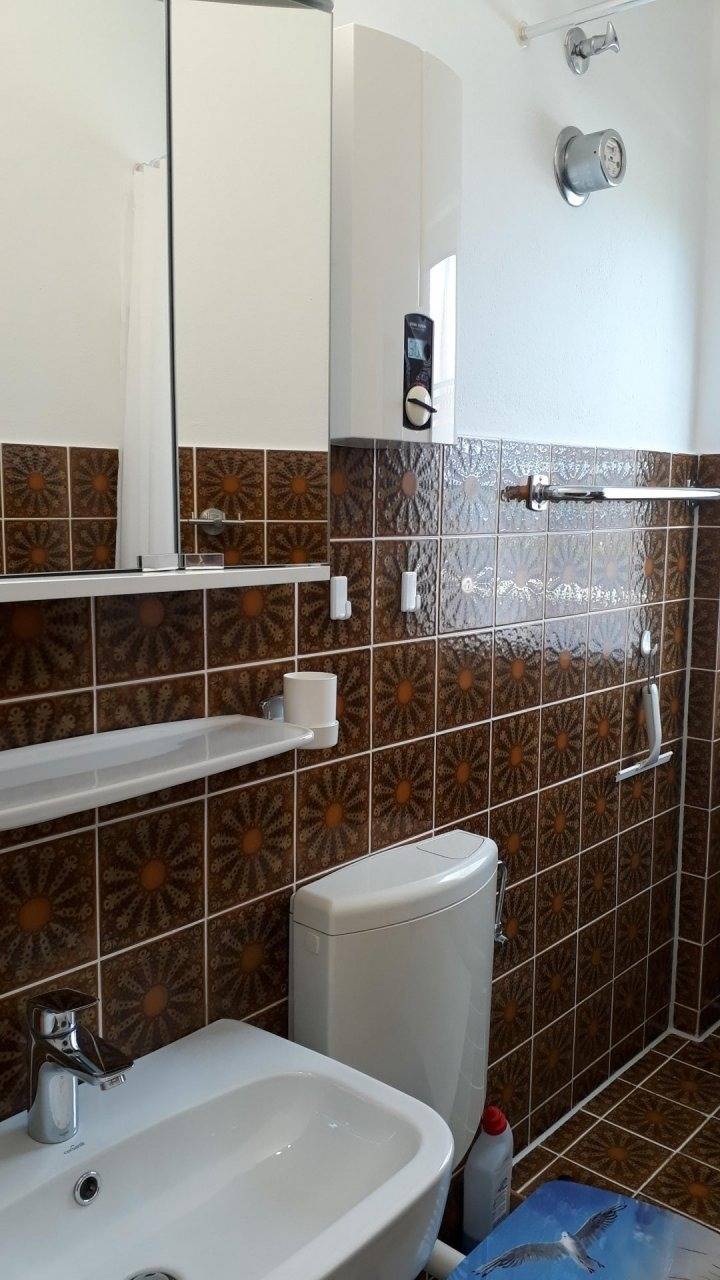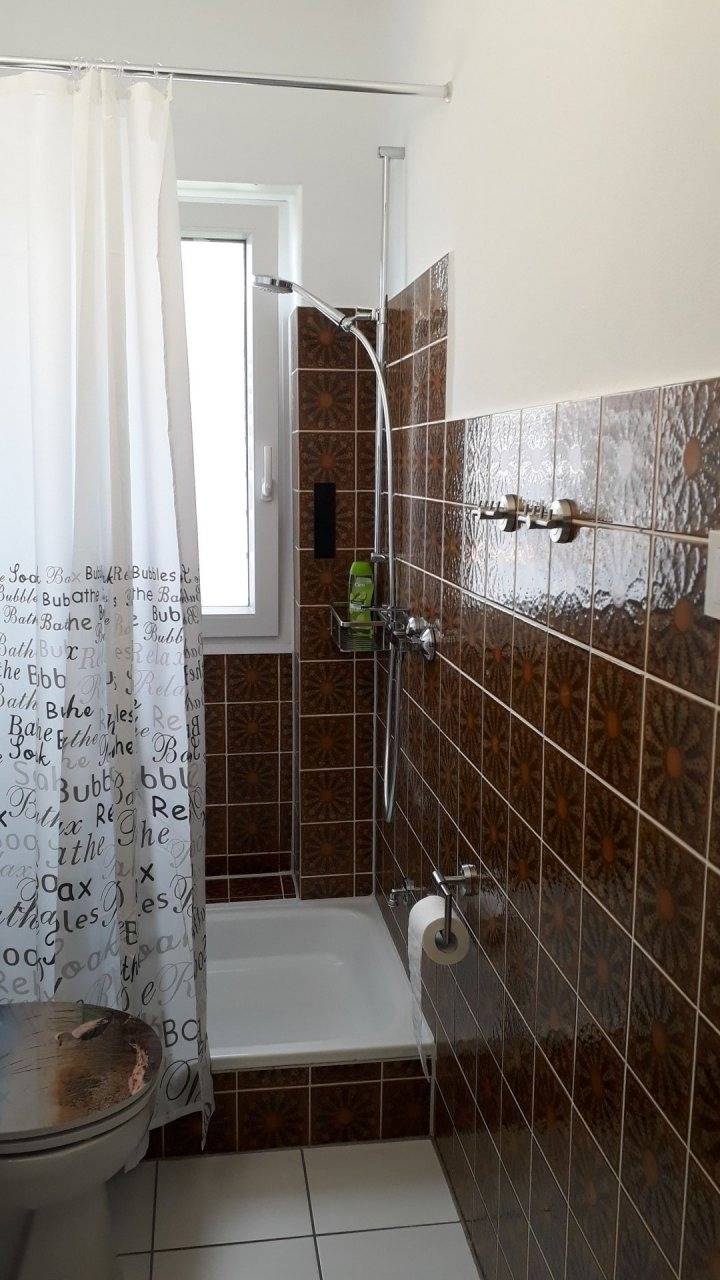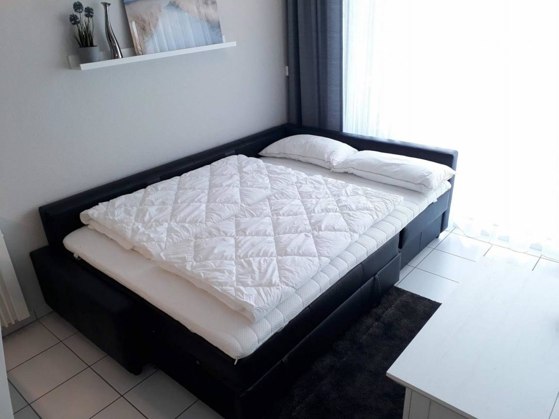 Das Wohn- und Schlafzimmer sowie der Flur mit Garderobe wurden frisch renoviert und sind komplett neu möbliert.Durch den Flur mit Garderobe betritt man das geschmackvoll eingerichtete Wohnzimmer. Dort befindet sich ein modernes, ausziehbares Schlafsofa für zwei weitere Personen. Ein großer Fernseher, CD-Radio, CDs, Gesellschaftsspiele, Bücher, etc. sind hier natürlich ebenfalls vorhanden.Eine integrierte, gut ausgestattete Küchenzeile (4 Cerankochfelder, Backofen, Dunstabzugshaube, Kühlschrank, Toaster, Wasserkocher, Eierkocher, Brotschneidemaschine, Senseo-Pad, klassische Kaffeemaschine), Bügeleisen, Wäscheständer und Kinderhochstuhl runden das Bild ab.Vom Flur aus gelangt man auch in das Schlafzimmer mit einem bequemen Doppelbett (1,40 m x 2 m) für zwei Personen und einem Kleiderschrank.WLAN ist selbstverständlich kostenfrei verfügbar.Die Wohnung ist perfekt für 2 bis 3 Personen geeignet. Bei Nutzung aller vorhandenen Schlafmöglichkeiten (Doppelbett im Schlafzimmer und 2-er Schlafsofa im Wohnzimmer) finden aber sogar 4 Personen einen bequemen Schlafplatz. Unser Tipp: Die Toppermatratze aus dem Schlafzimmer passt bei Bedarf perfekt auf das ausgezogene Schlafsofa im Wohnzimmer. Die Betten für das Schlafsofa befinden sich im Sofabettkasten.