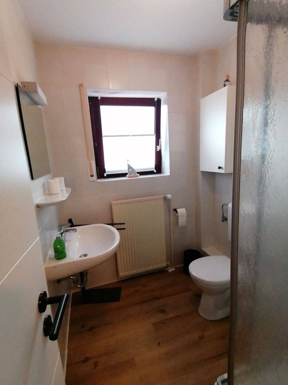 Schöne, gemütliche Oberwohnung in ruhiger Anliegerstrasse gelegen. Die Wohnung ist mit 2 Schlafzimmern (Doppelbett 1,80x2,00 / Doppelbett 1,60x2,00 ), einem großen Wohnraum mit Essplatz und Einbauküche, Flur, Tageslichtduschbad und Balkon ausgestattet. Aussenrollos und Fliegengitter sind in der ganzen Wohnung vorhanden. Ein Fahrradabstellraum und PKW-Stellplatz sind direkt am Haus. Waschmaschine und Trockner sind im Haus vorhanden.AB 2023 KOMPLETT FRISCH RENOVIERT